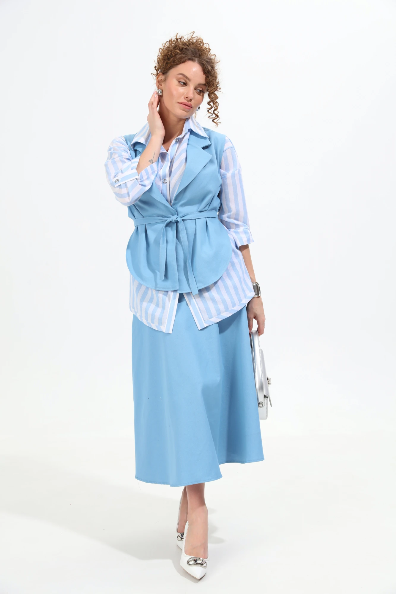 Юбочный костюм NikVa 957-1 голубой и бело-голубые полосы тройка
