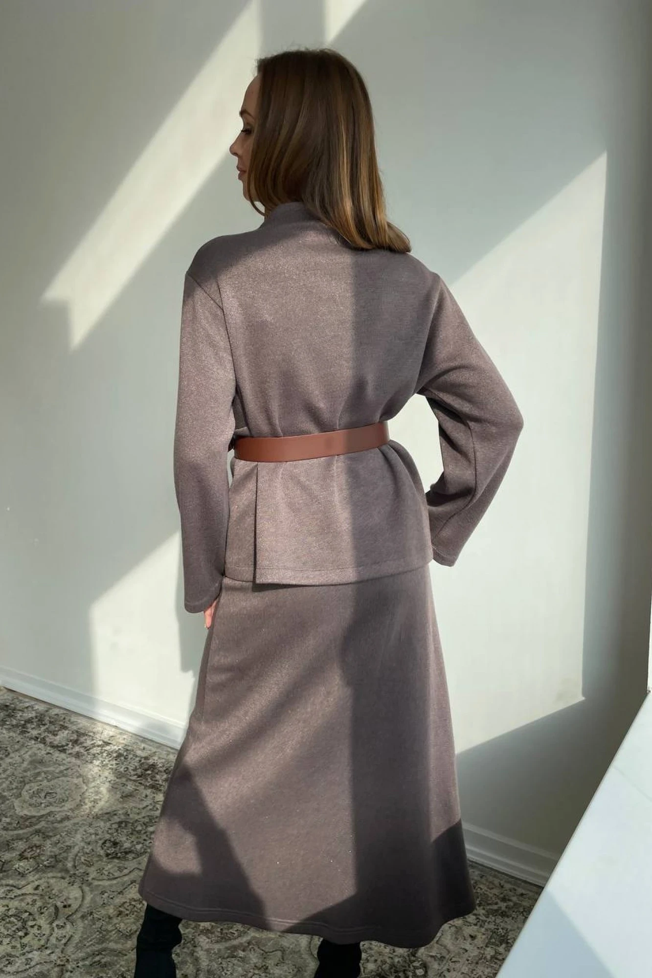 Джемпер свободного силуэта, с широким рукавом. Юбка прямая, расширенная к низу. Пояс в комплекте.