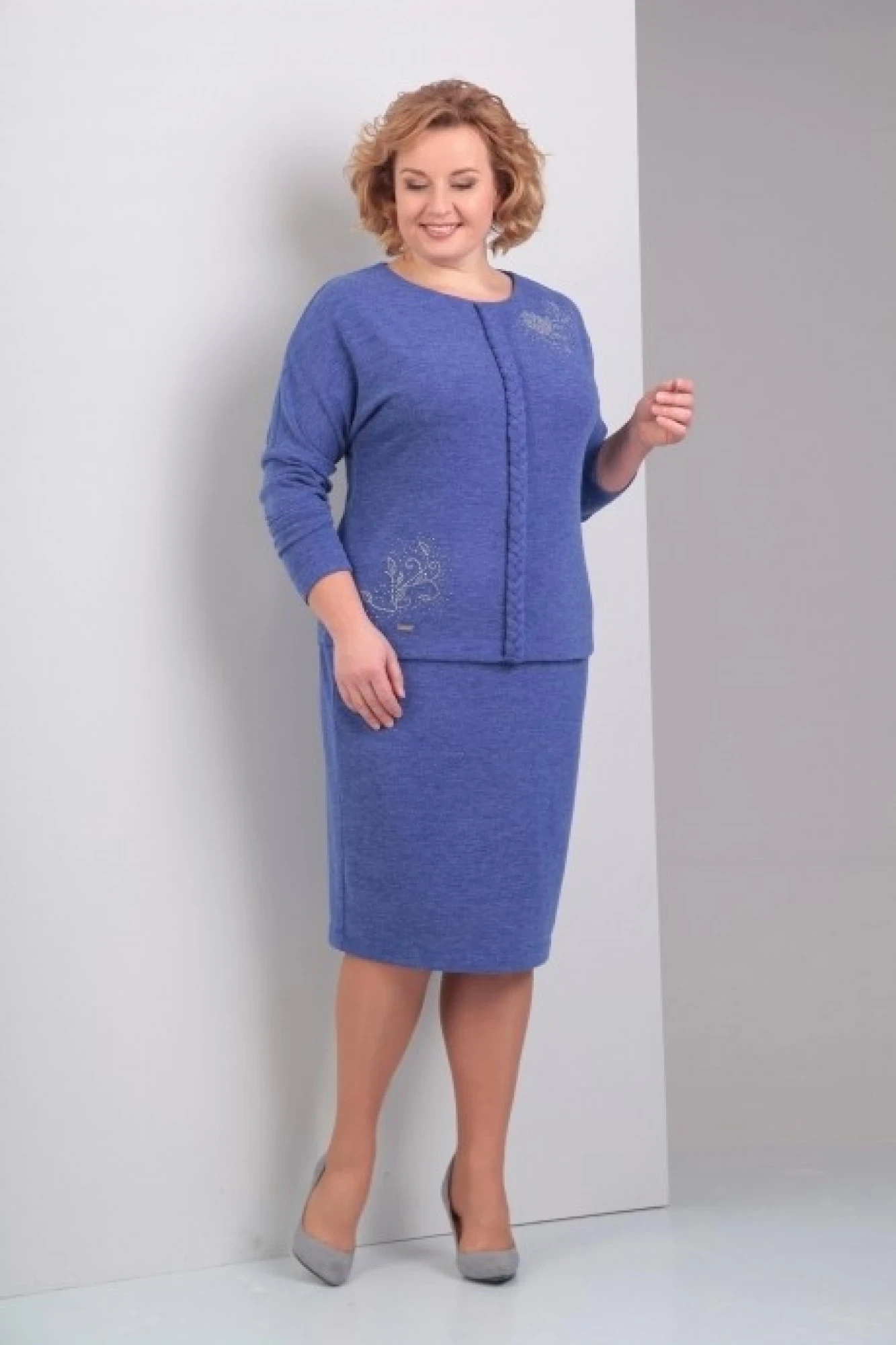 Костюм женский: юбка прямая, пояс на резинке. Блузон с длинным рукавом и спущенным плечом, свободного силуэта.