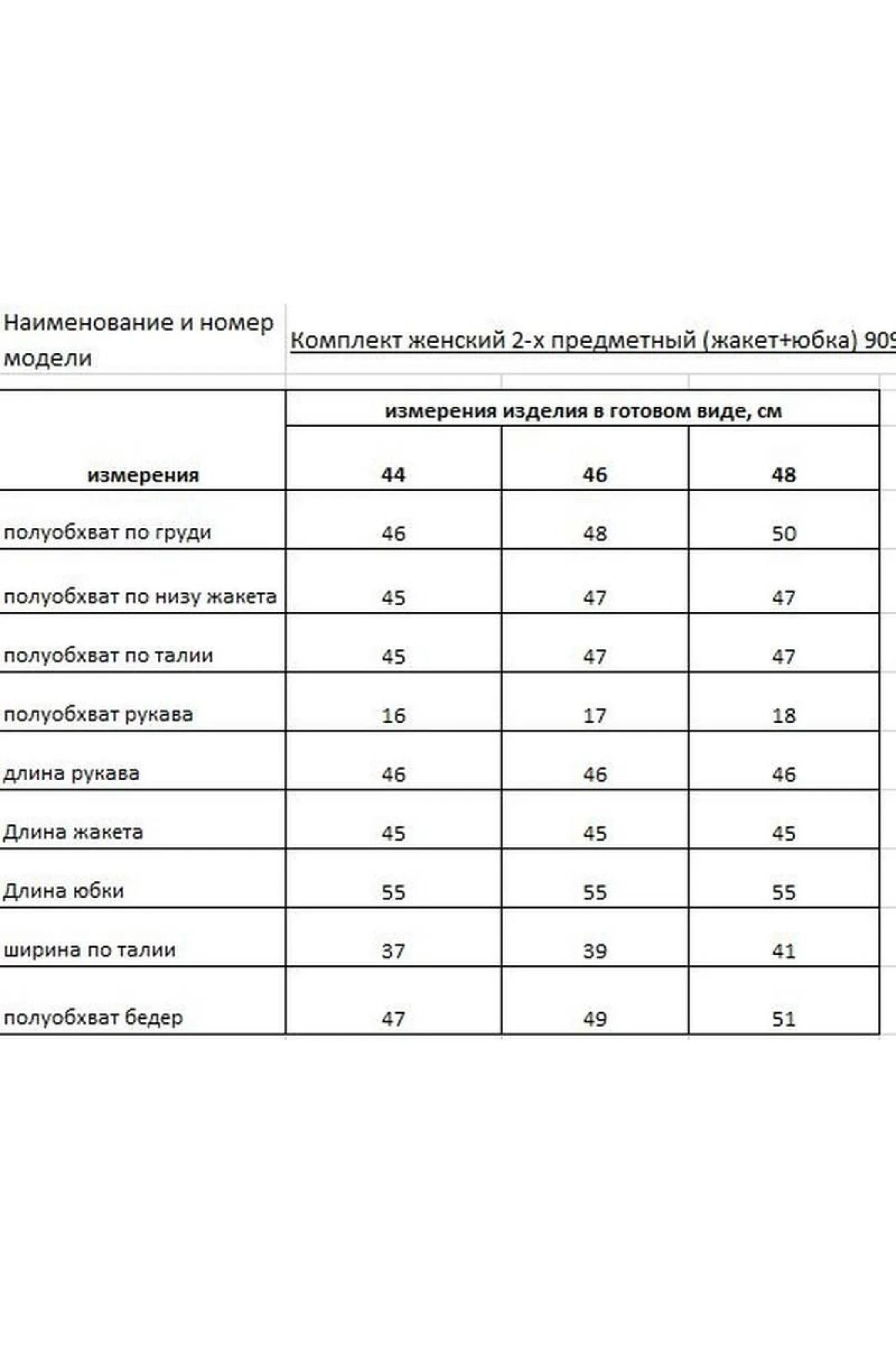 Костюм 2-х предметный. Жакет с округлой горловиной, на центральной потайной застежке. Жакет прилегающего силуэта с рельефами по груди. На подрезе по линии талии имитация кармана. По плечам отлетная кокетка с рельефами. Рукав 2-х шовный прямой. Юбка прямая, по рельефам шлицы с пуговицами, в боковых швах карман. Пояс-обтачка с застежкой, молния по центру шва спинки.