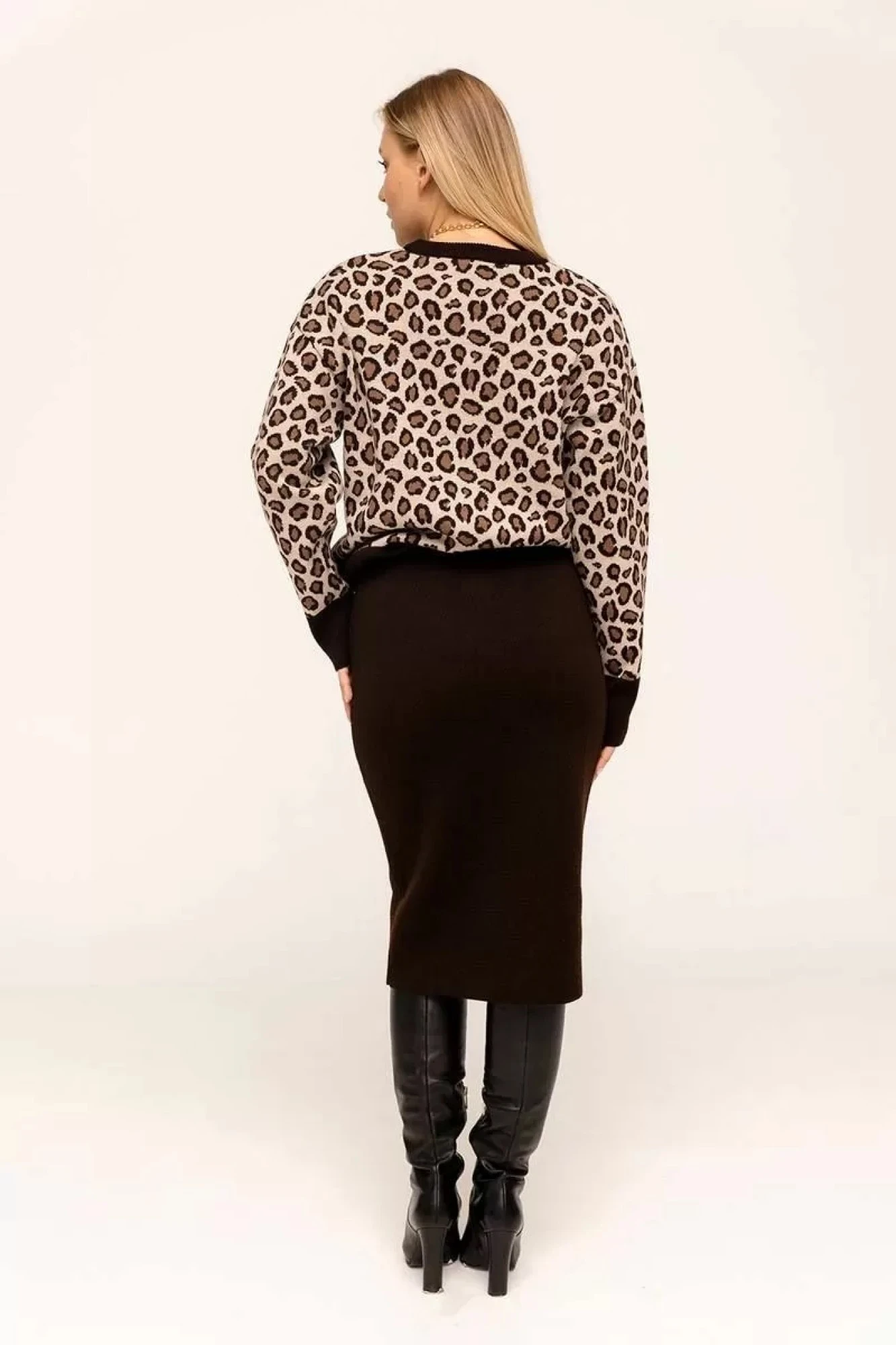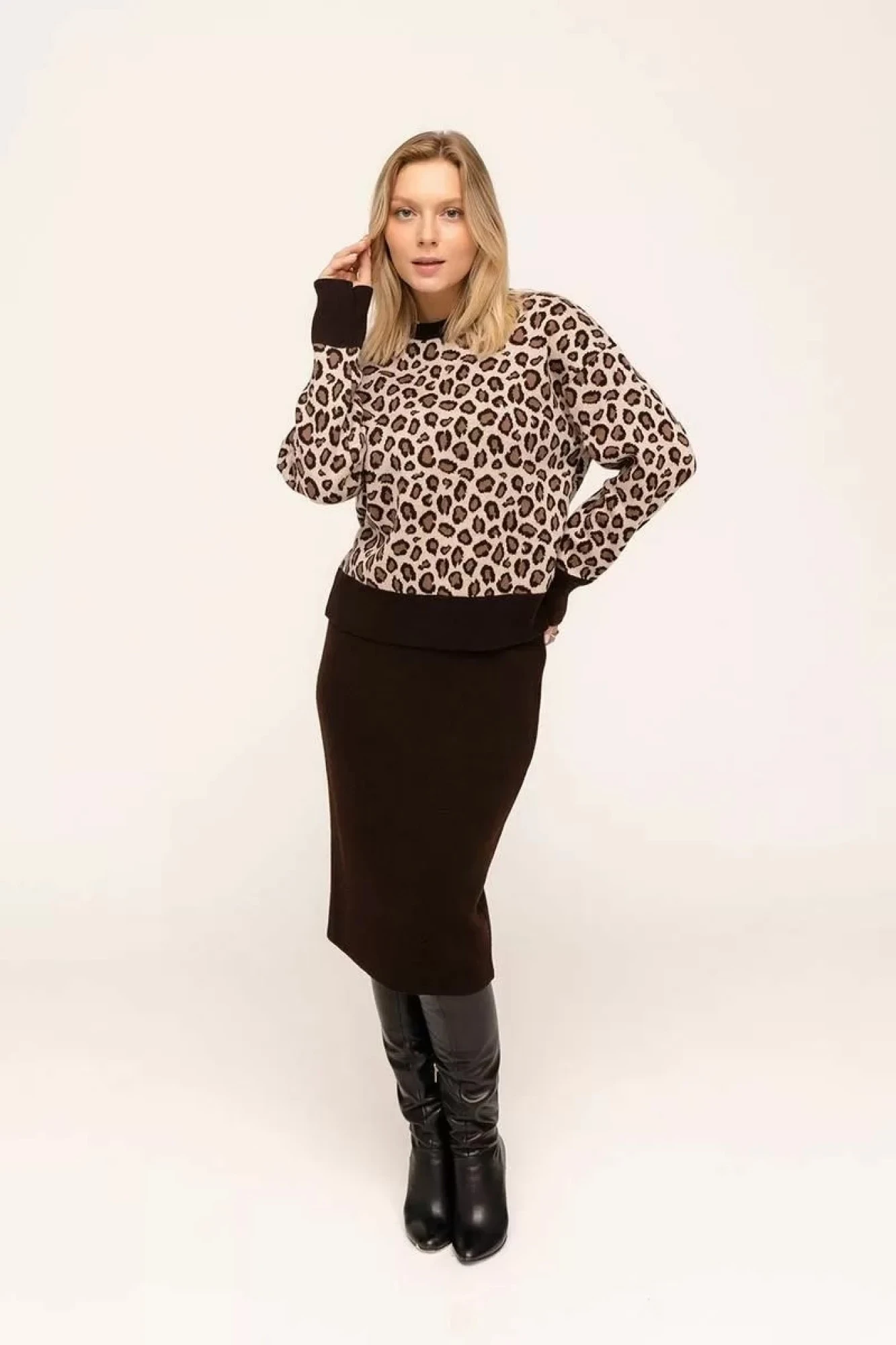 Юбочный костюм Romgil ТЗ848Ш светлый опаловый, глубокий коричневый, коричневый