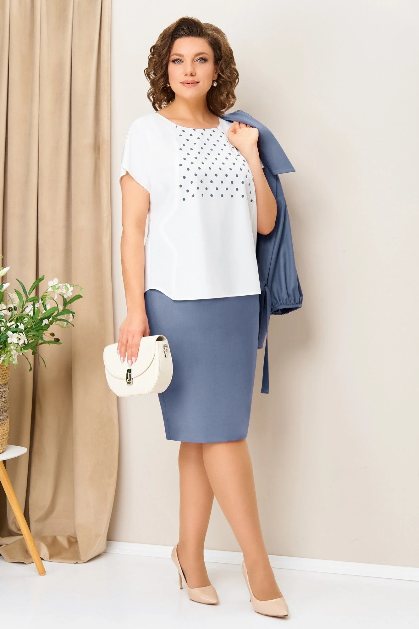 Юбочный костюм VOLNA 1425 голубой тройка