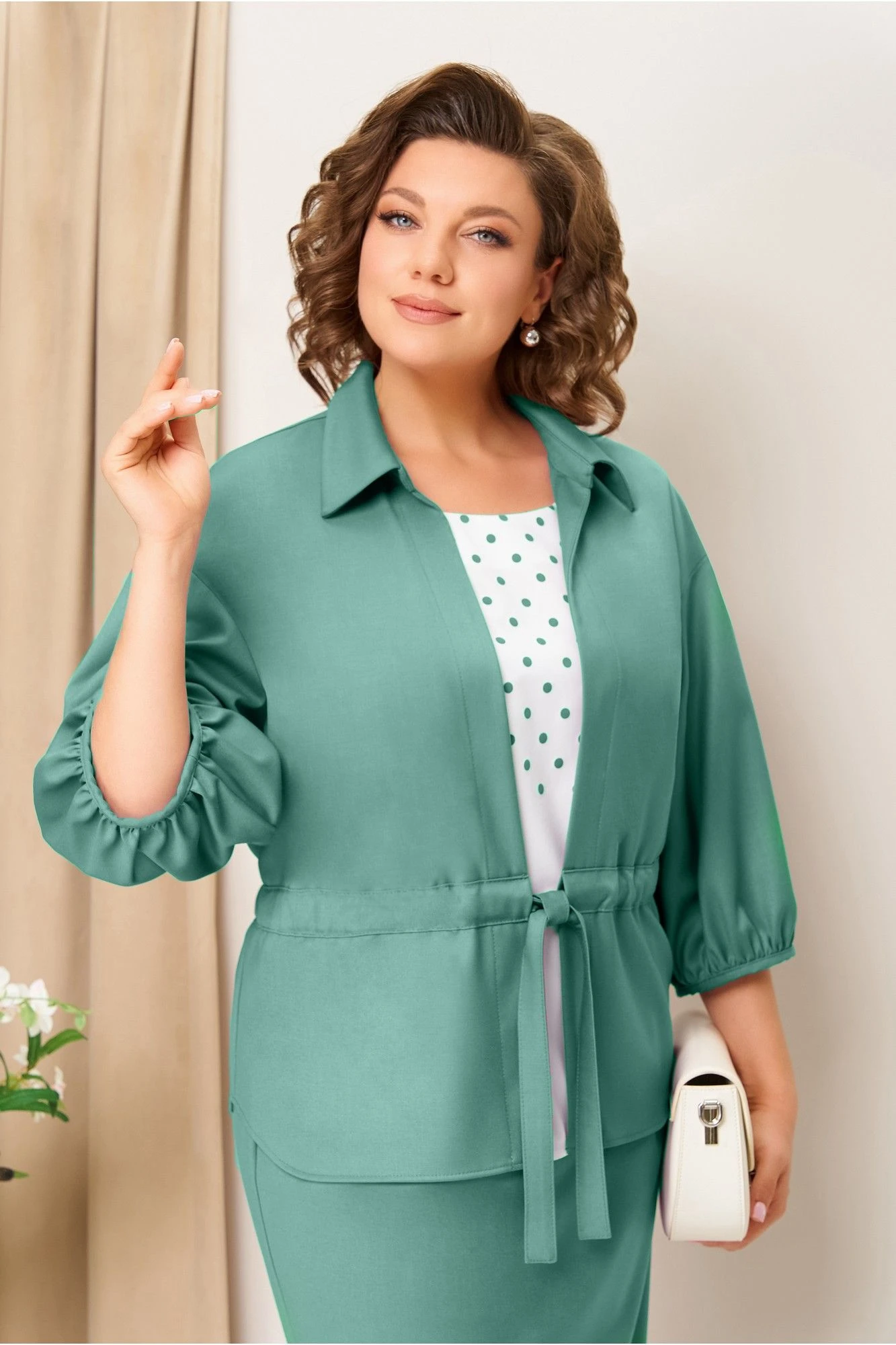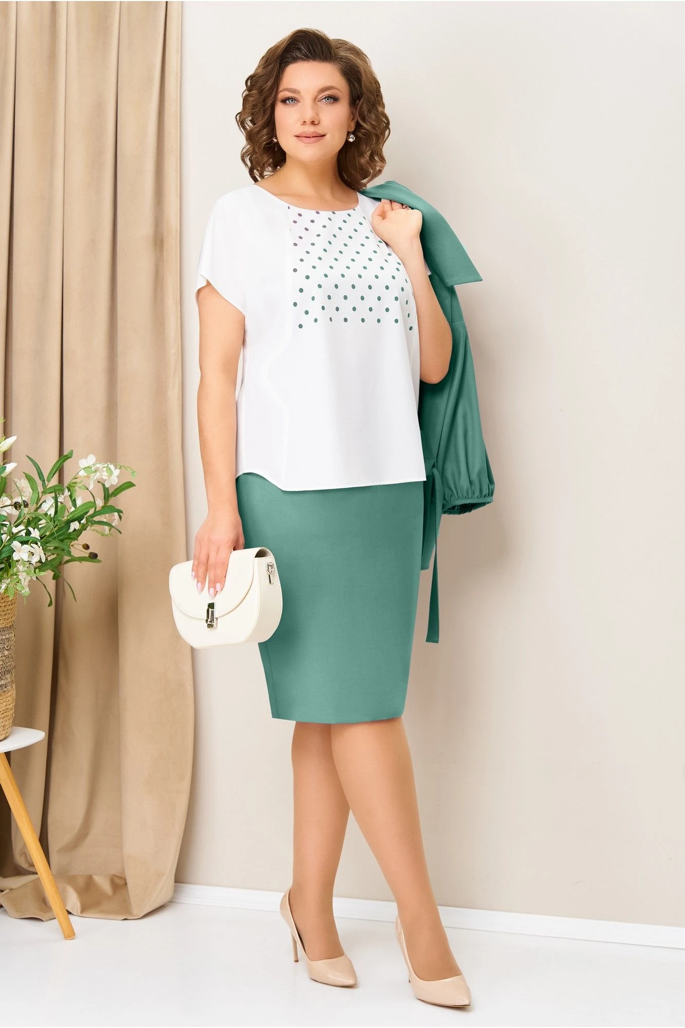 Юбочный костюм VOLNA 1425 мятно-бирюзовый тройка