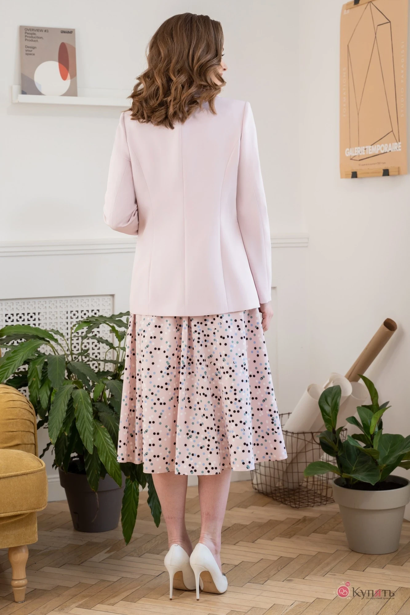 ЖАКЕТ: ширина жакета на уровне проймы – 58,5 см (±1,0 см), длина рукава жакета – 62,0 см (±1,0 см), ширина рукава жакета вверху – 21,0 см (±1,0 см), ширина рукава внизу – 13,5 см (±0,5 см). ПЛАТЬЕ: ширина на уровне глубины проймы – 55,0 см (±1,0 см), длина рукава – 22,5 см (±1,0 см), ширина рукава – 21,5 см (±1,0 см).
