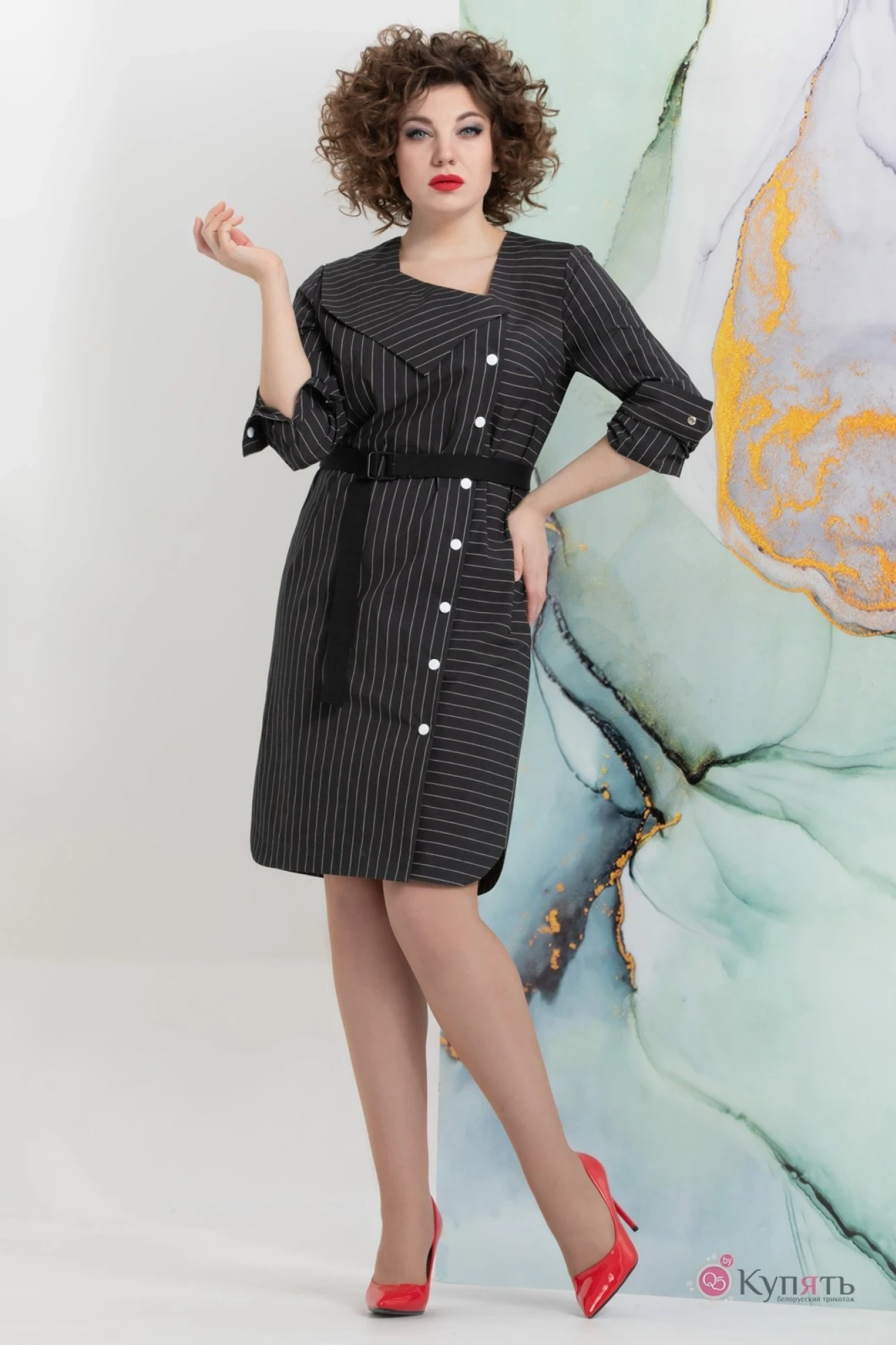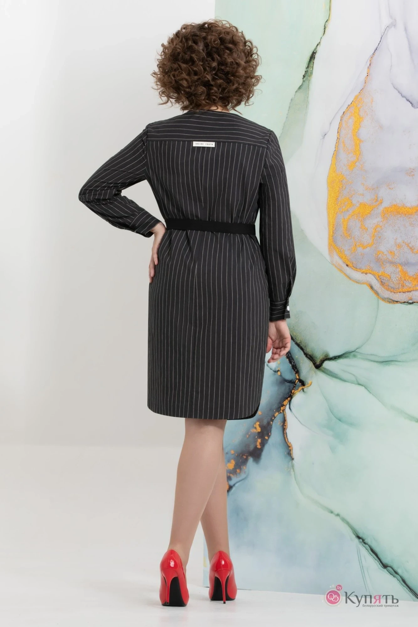 Платье полуприлегающего силуэта из костюмно-плательной ткани средней плотности. Застежка на кнопки спереди. Рукав втачной. Ремень съемный, входит в комплект. Фурнитура может незначительно отличаться
