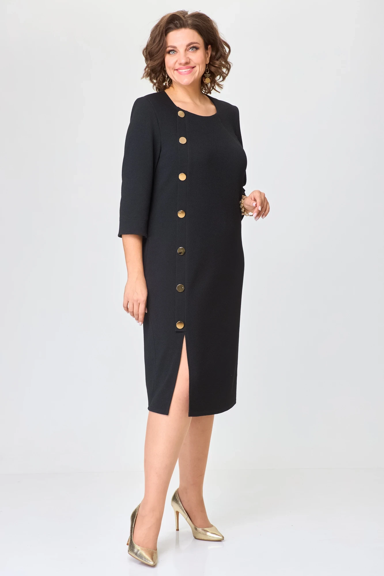 Классическое платье лаконичного кроя – идеальный выбор для любой женщины. Полуприлегающий силуэт и длина «миди» стройнит, а вертикальная планка с отделочными пуговицами вытягивает силуэт и придает шарм изделию. Горловина округлой формы без застежки. Нагрудная вытачка переведена в горловину и рельеф, в котором предусмотрен разрез.