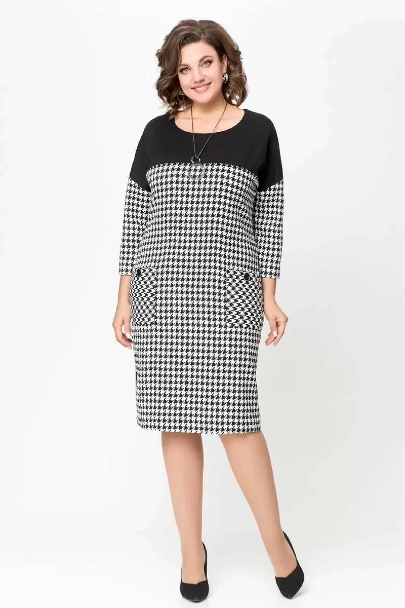 Платье Swallow 691 Черный, Черно-белая «гусиная лапка»