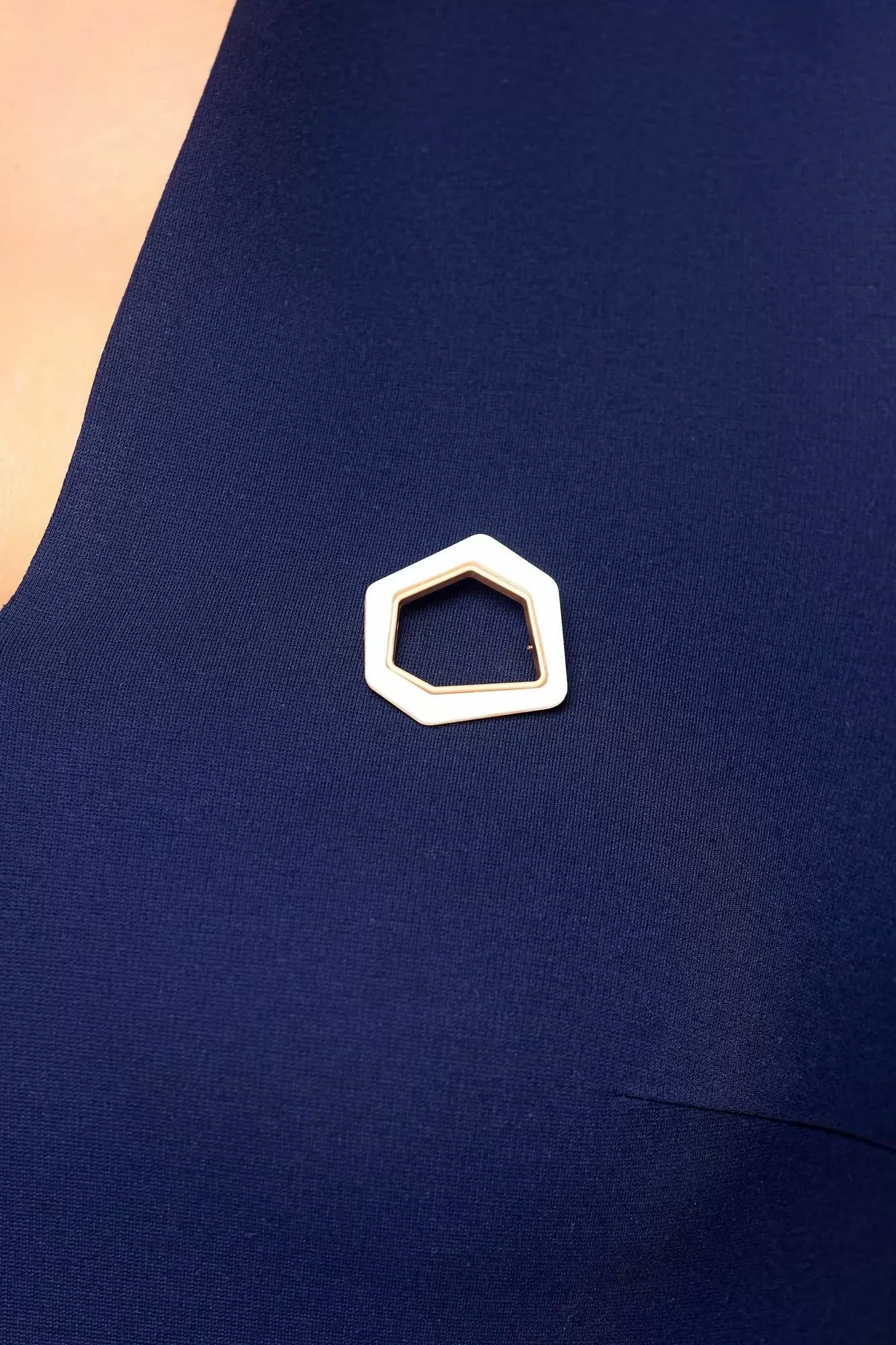 Деловое платье Swallow 699.1 Королевский синий, сине-бежевая «гусиная лапка».