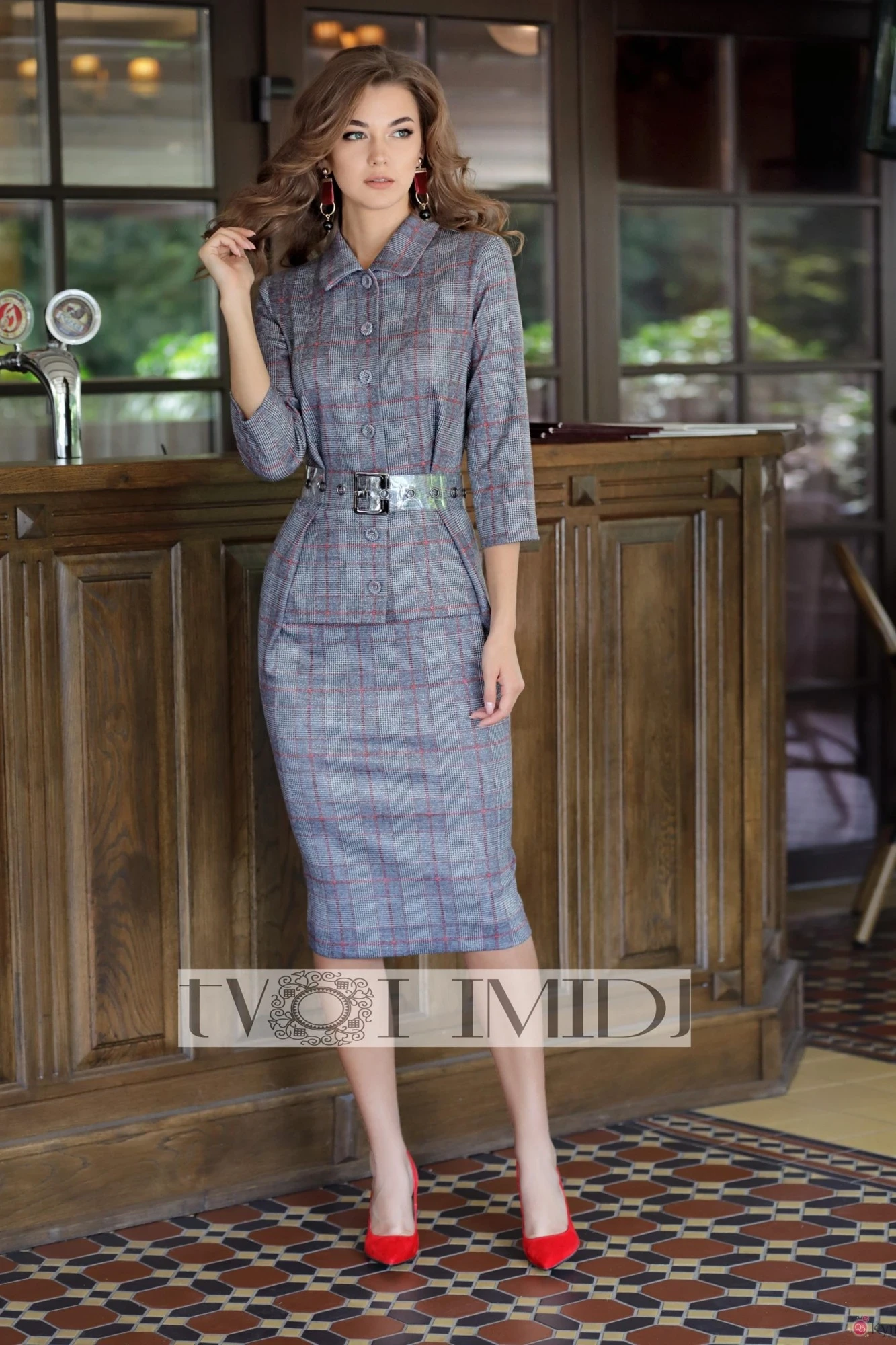 Трикотажное платье миди облегающее, идеально соответствует офисному дресс-коду. В тоже время, оно ни на мгновение не дает забыть окружающим о том, что перед ними - настоящая Женщина. Успешная, эффектная, уверенная в своих силах и знающая себе цену. Миди - длина универсальная, платья такой длины могут выбирать девушки и дамы любого возраста. Платье полуприлегающего силуэта, вточного покроя, с центральной застёжкой на 5 петель и пуговиц до линии талии. В нижней части от подреза мягкая складка и блеск с имитацией застёжки на 2 пуговицы. На полочке подрез по линии талии до подреза в верхней части бочка и мягкая складка. По спинке средний шов со шлицей, талиевые выточки. Рукав одношовный. К платью предлагается съёмный пояс из прозрачного пластика. Материал платья - мягкий трикотаж. Такое платье призвано подчеркнуть природную женскую красоту и грацию, а также безупречный вкус его обладательницы.