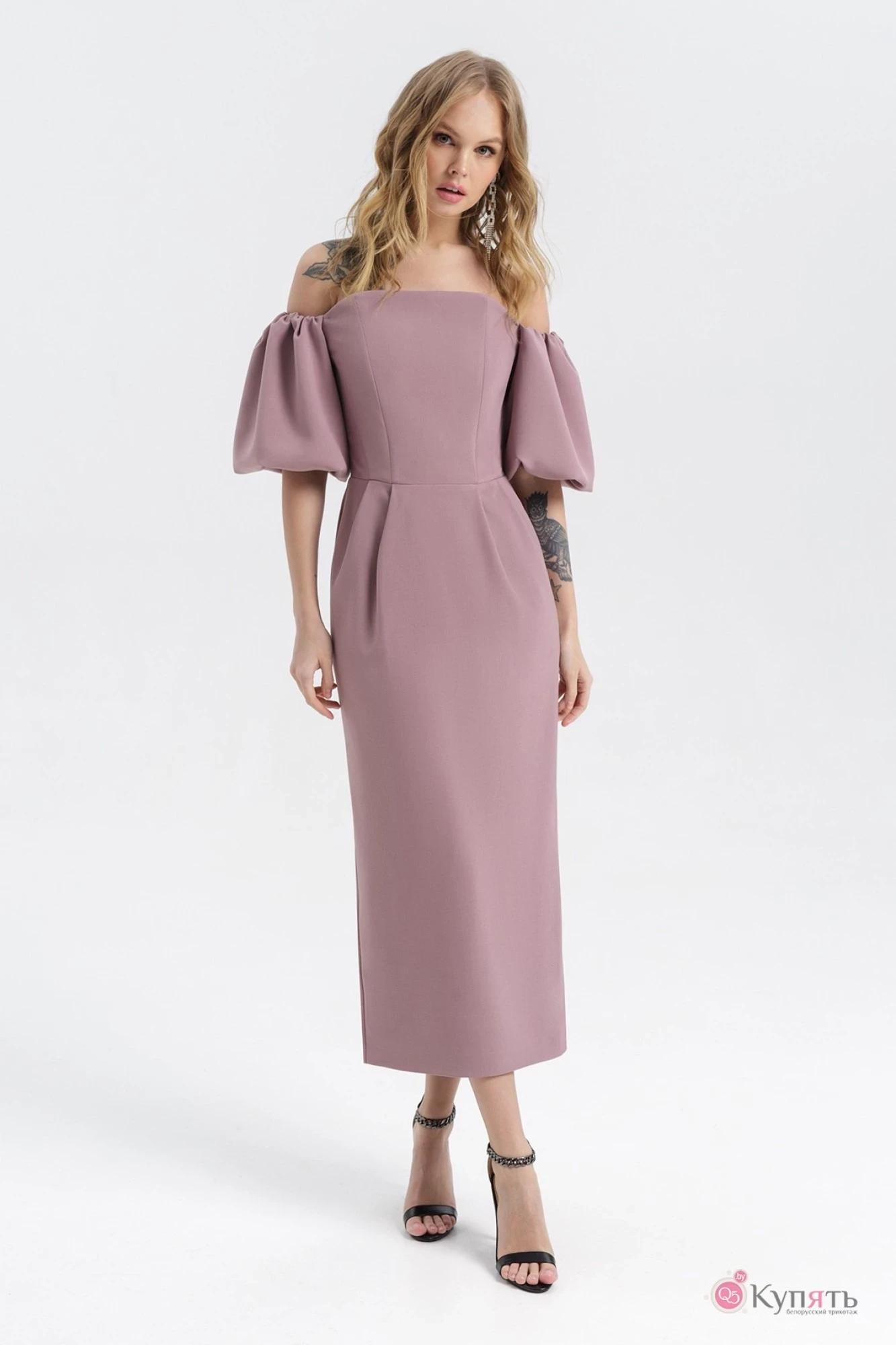 Корсетное платье длины миди из текстильной ткани. Детали: прилегающий силуэт, перед и спинка с рельефными швами, рукава короткие пышные с резинкой, застежка на потайную молнию в среднем шве спинки, платье на подкладке. Вариант мини представлен под арт. 2252