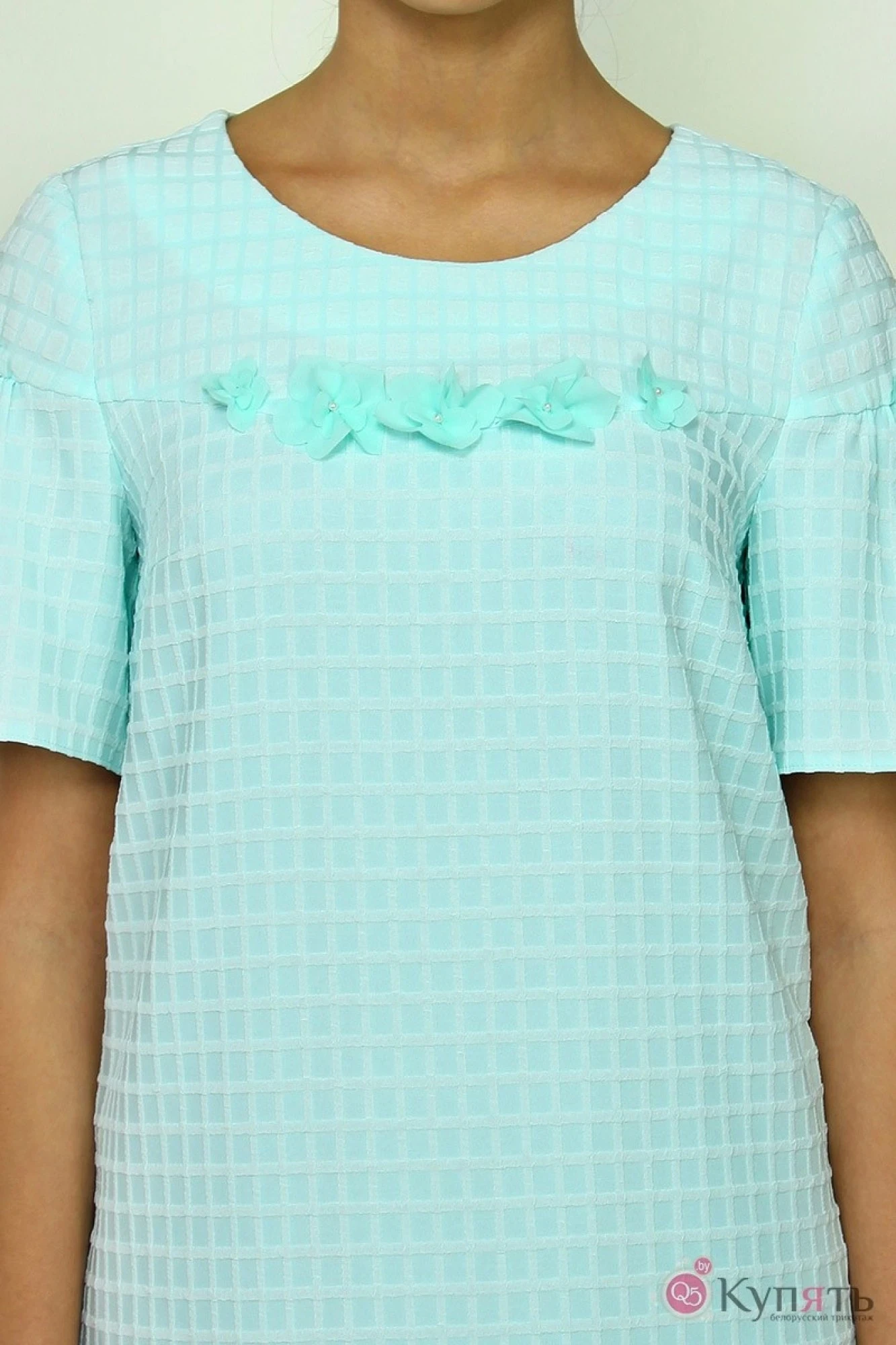 Платье женское выполненное из облегченной жаккардовой ткани. Полочка на кокетке. Спинка со средним швом, застежка по спинке на пуговичке и навесной петельке. По низу – притачная отрезная деталь с круговыми встречными складками. Рукав втачной с притачными удлиненными крылышками со сборкой. На притачных линиях кокетки и на рукавах пришиты съемные декоративные шелковые цветы, с жемчужными бусинами. Платье выполнено на подкладке.