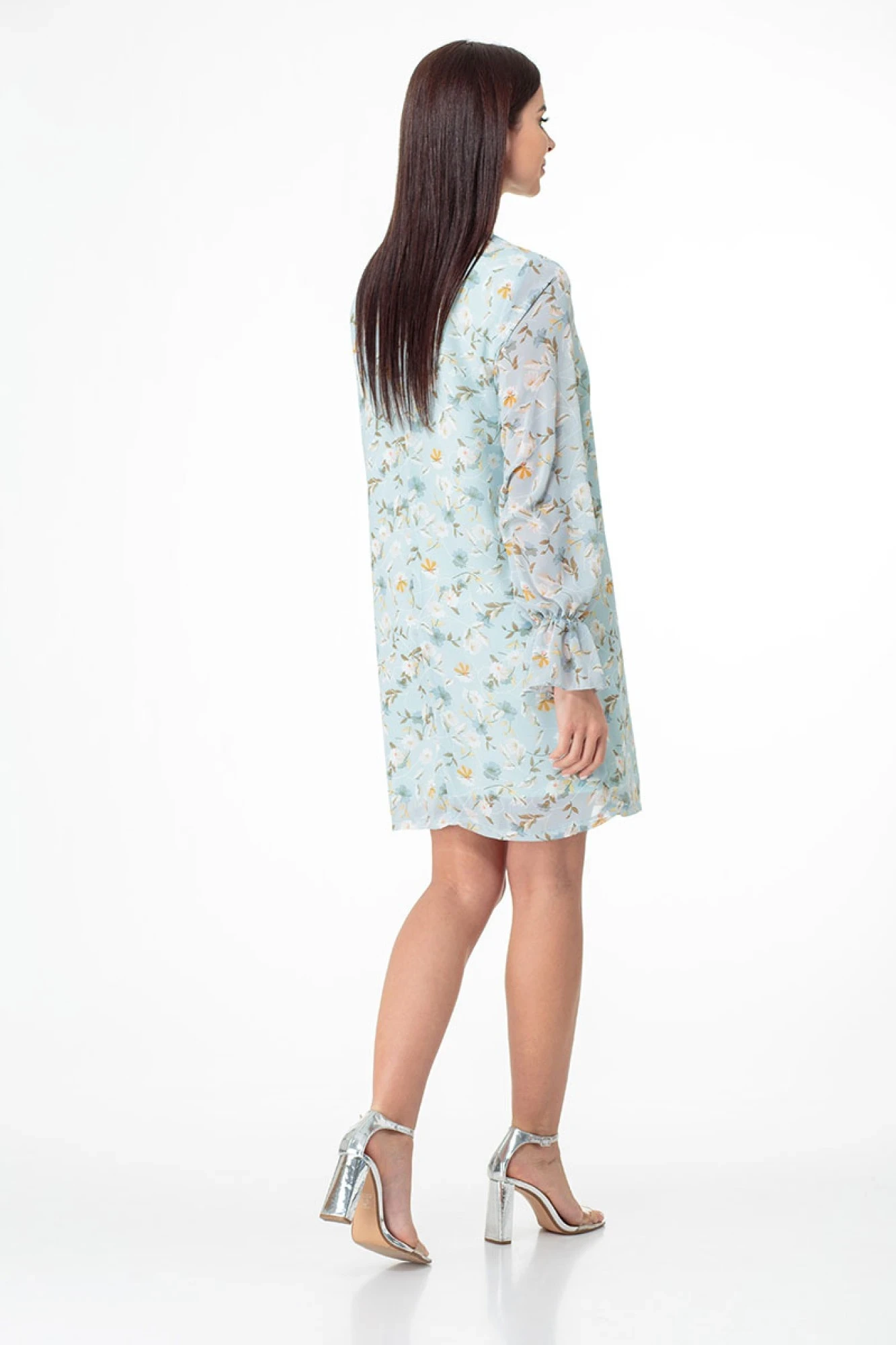 Изящное коктейльное платье нежного оттенка из принтованного шифона не оставит Вас равнодушной!