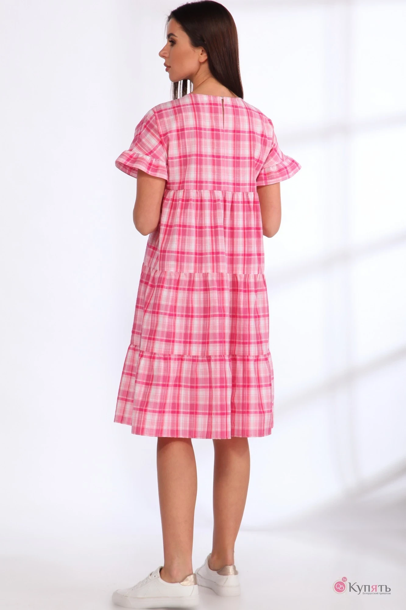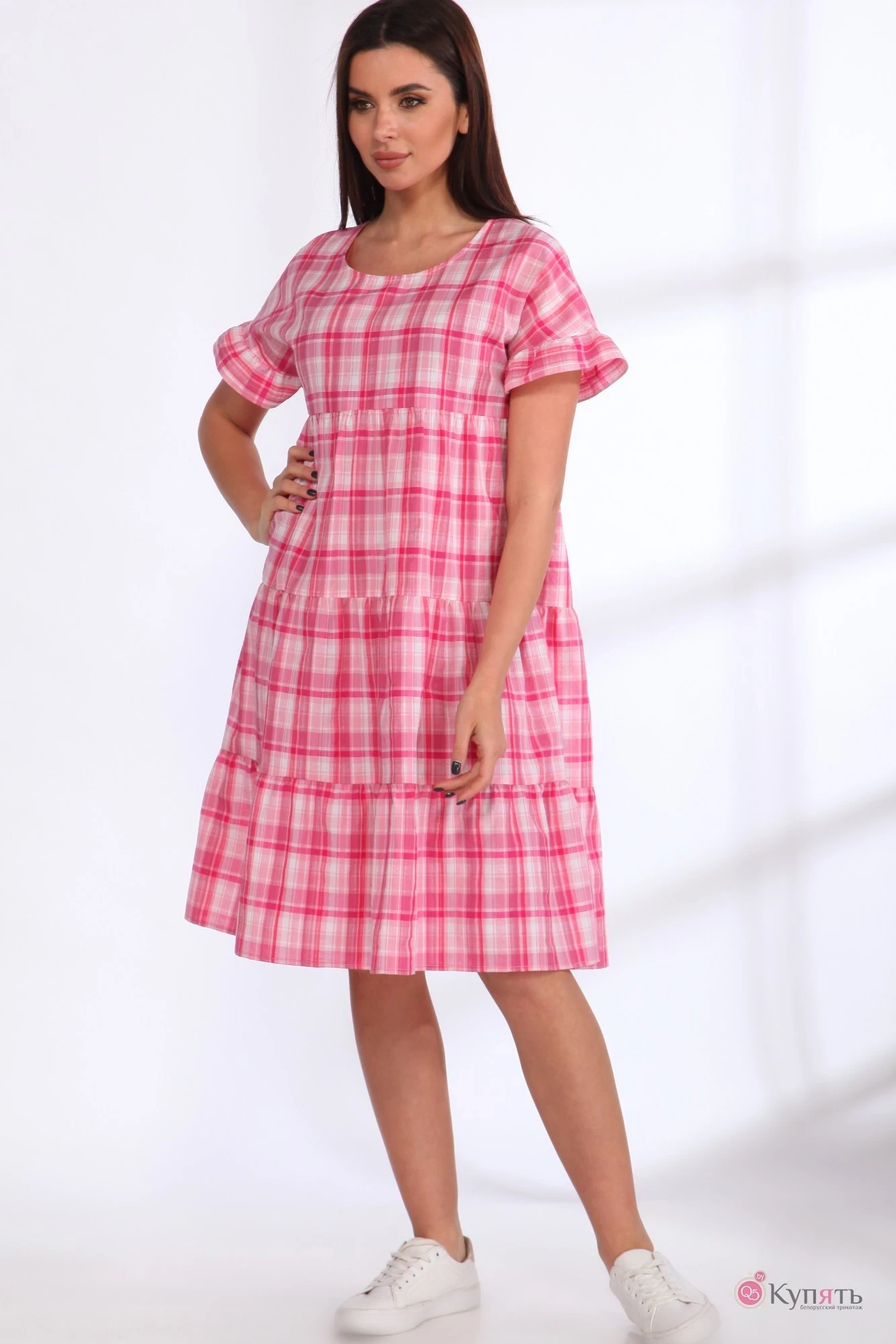 Стильное, нарядное платье в нем вы будете неотразимы. Платье свободного силуэта из натуральной хб ткани с цельнокроеным рукавом, к которому пришита небольшая рюша. Платье сосоит из трех объемных воланов.