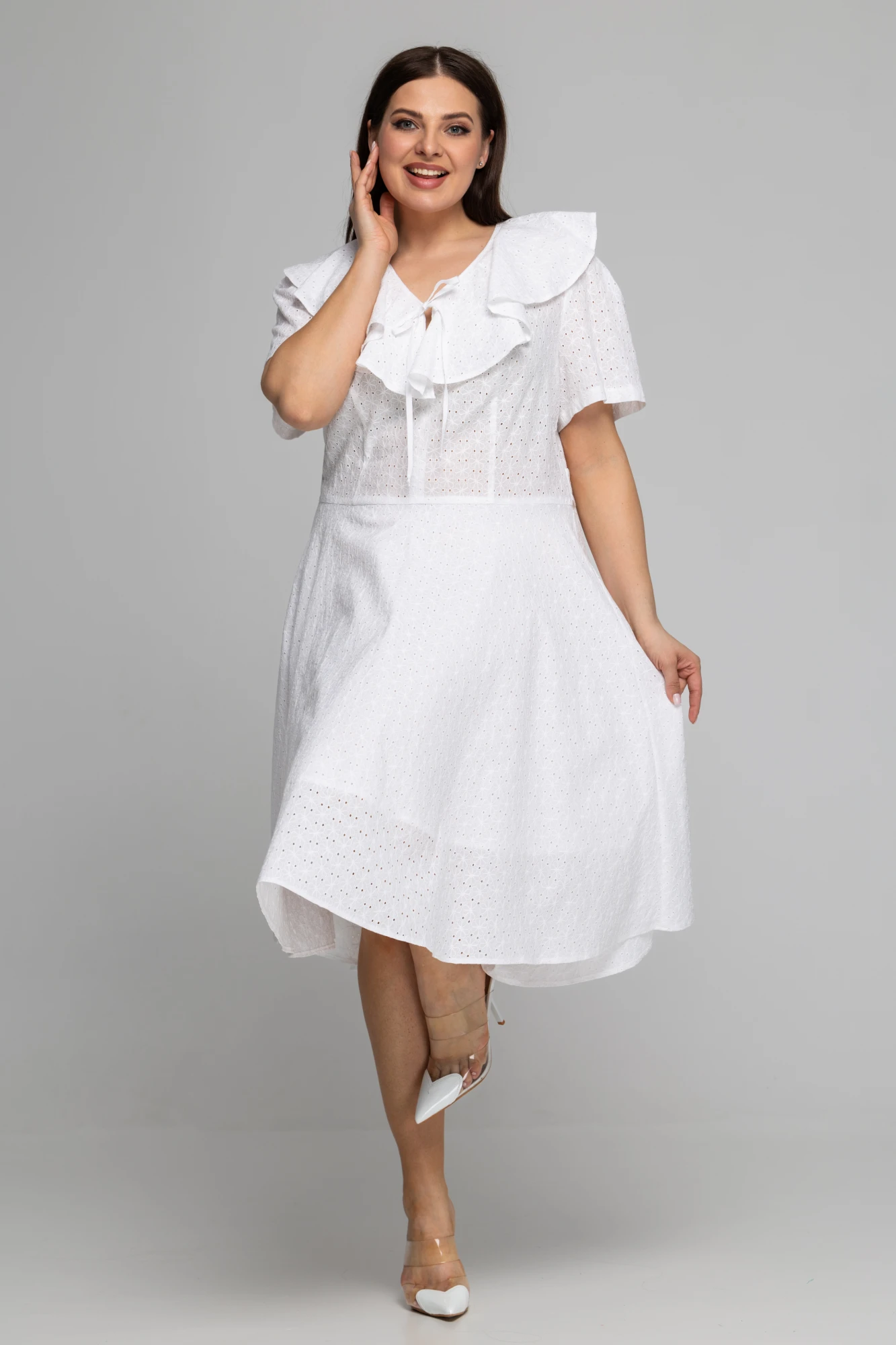Платье с поясом из 100% хлопка отличный вариант для любого случая. Модель с коротким рукавом, V-вырез, по горловине волан на завязке, по спинке потайная застежка-молния