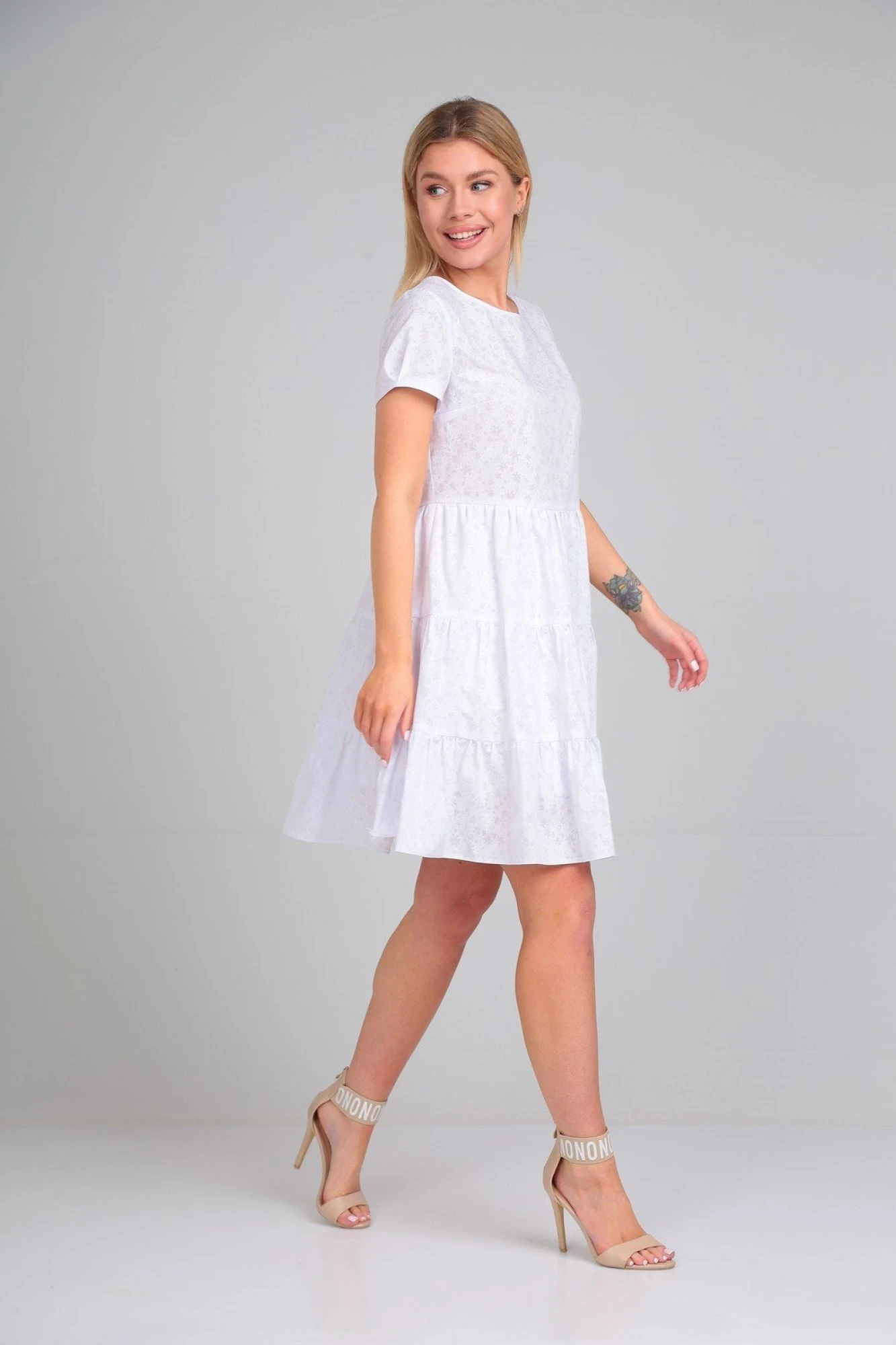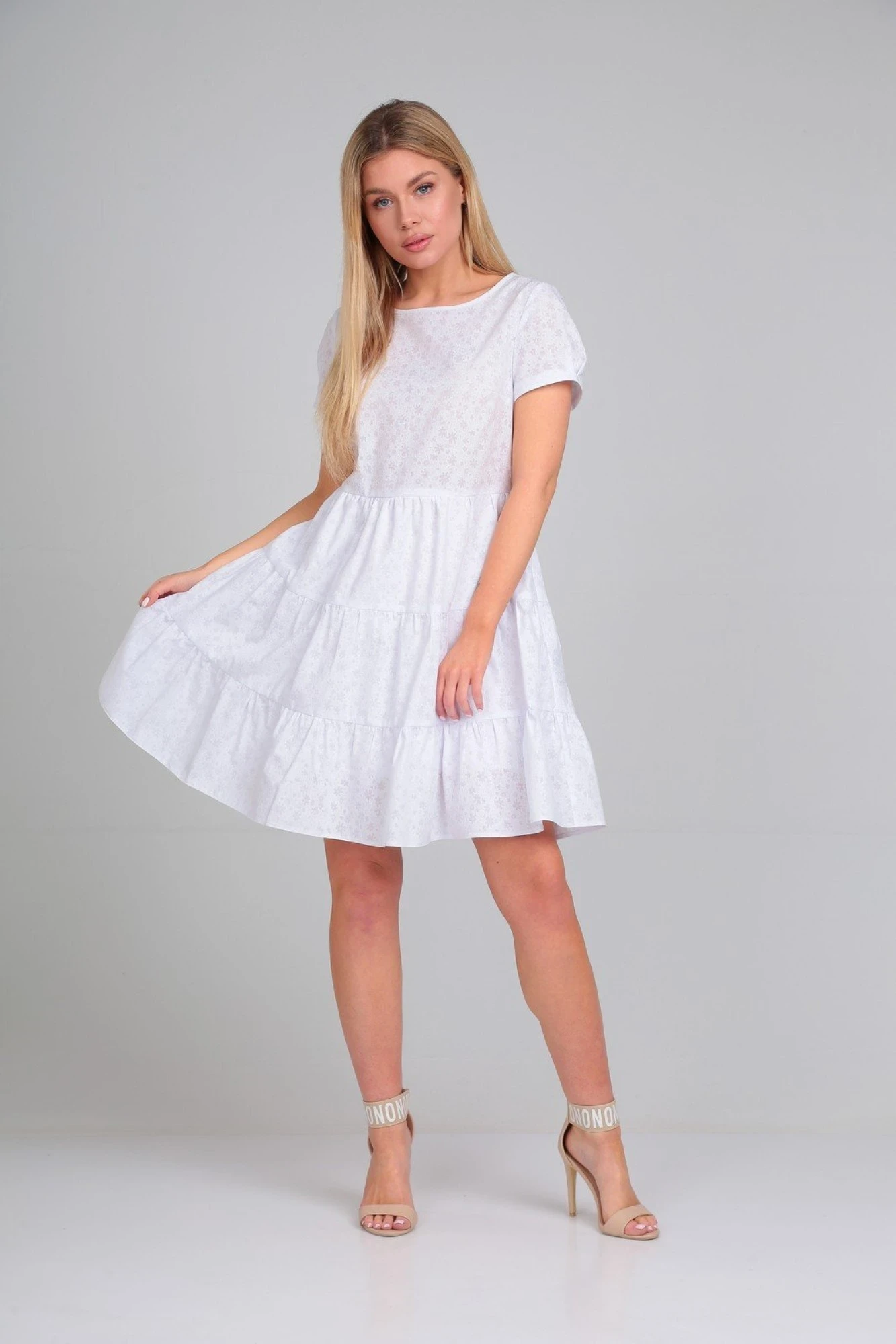Роскошное платье с воланами и высокой талией является идеальным вариантом для изысканных девушек. Удачное лекало обеспечивает шикарную посадку, скрывая недостатки и подчёркивая женственность и достоинства фигуры. Женское сексуальное платье мини выполнено из нежнейшего хлопка, благодаря чему обладательнице будет легко даже в самую жаркую погоду. Платье с коротким рукавом-фонарик. Горловина изделия выполнена в форме лодочки. Юбка на подкладке из хлопка. Короткое платье свободного кроя может использоваться как повседневная одежда, для беременных, а также подойдёт для создания вечернего образа, для свидания, для праздника и вечеринки, на день рождения.