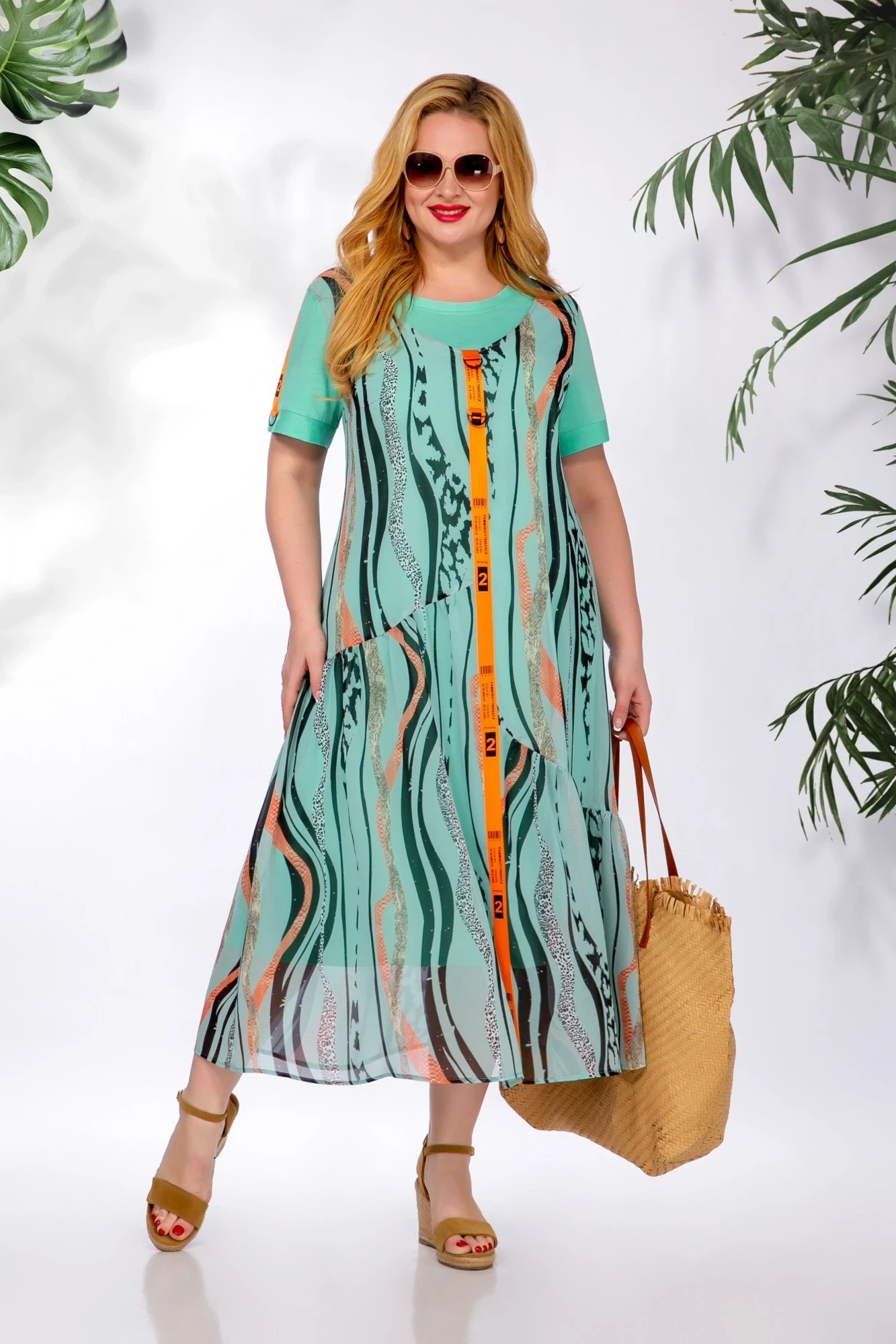 Описание: платье-сарафан состоит из двух изделий - верхнего и нижнего. Верхний сарафан выполнен из плательно-блузочной ткани. По переду обработаны ассиметричные подрезы, от которых идут воланы со сборкой. По центру выполнен шов, на который настрочена декоративная тесьма. В качестве декора добавлены полукольца. Горловина v- образная. По спинке также обработан средний шов. Нижнее платье прямого силуэта, выполнено из трикотажного полотна. Горловина круглая, обработана бейкой. Рукава втачные, внизу притачные манжеты. По центру рукавов настрочена декоративная тесьма с полукольцами.