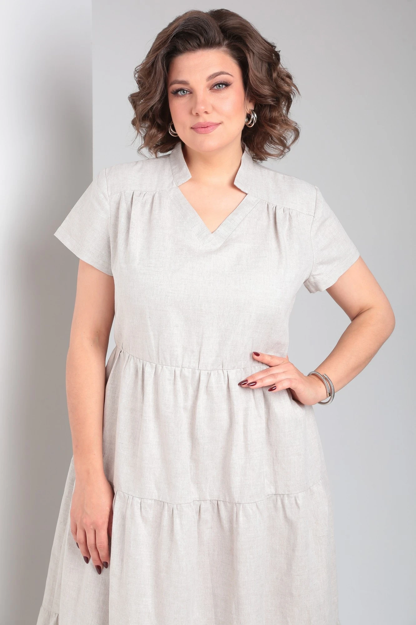 Наше платье из натурального льна будет комфортно для повседневного использования жарким летом. Красиво будет смотреться также с поясом контрастного цвета.