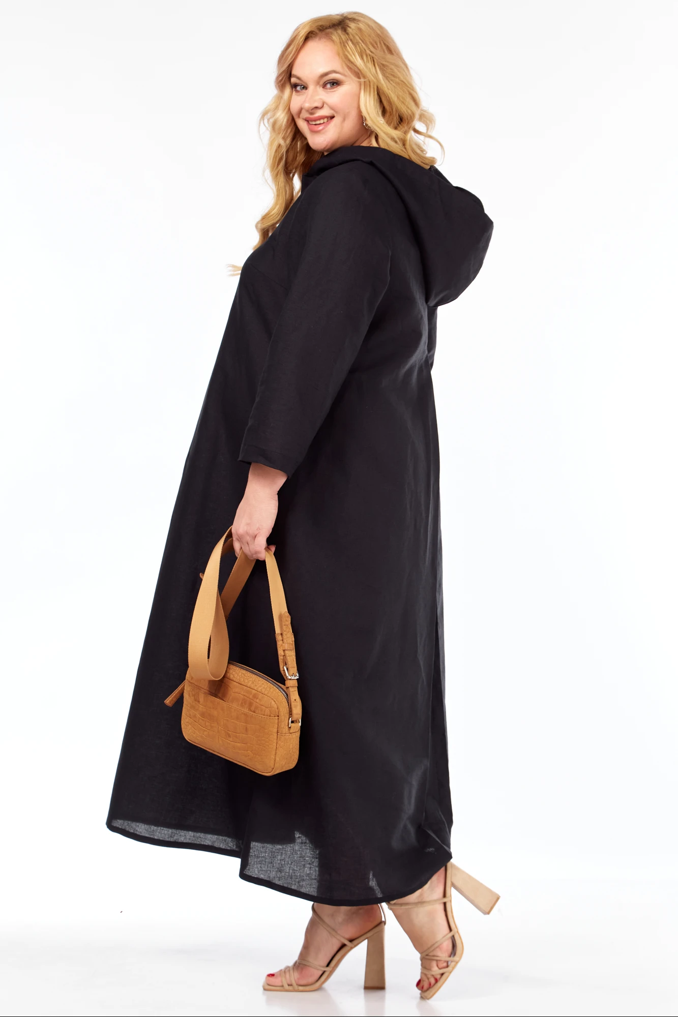 "Погрузитесь в оазис летнего комфорта с новой льняной моделью от Celentano, созданной с учетом особенностей женской фигуры plus size. Это одежда где каждая деталь продумана до мелочей для достижения идеального баланса между свободой, стилем и функциональностью. Уникальный дизайн: Свободный А-силуэт, мягко облегает фигуру, обеспечивая максимальный комфорт и свободу движений. Никакого давления, только плавные линии и естественная красота. Изготовленное из 100% натурального льна премиального качества, это платье дарит ощущение прохлады и свежести даже в самый знойный день. V-образный вырез плавно переходит в функциональный капюшон, предоставляя вам возможность создавать разные образы в зависимости от вашего настроения и погоды. Рукава, которые можно легко подвернуть, адаптируются к вашему ритму жизни. Боковые карманы, искусно интегрированные в швы, позволяют всегда иметь под рукой необходимые мелочи, не нарушая гармонию силуэта. Вертикальная складка на спинке обеспечивает идеальную посадку и свободу движений. Длина макси визуально вытягивает силуэт, создавая эффект стройности и элегантности. Длина платья-130см, длина рукава-55см Платье выполнено из качественного белорусского льняного полотна (пр-во Орша). Ткань не тянется. Платье доступно в широком диапазоне размеров, чтобы каждая женщина могла найти свой идеальный вариант.