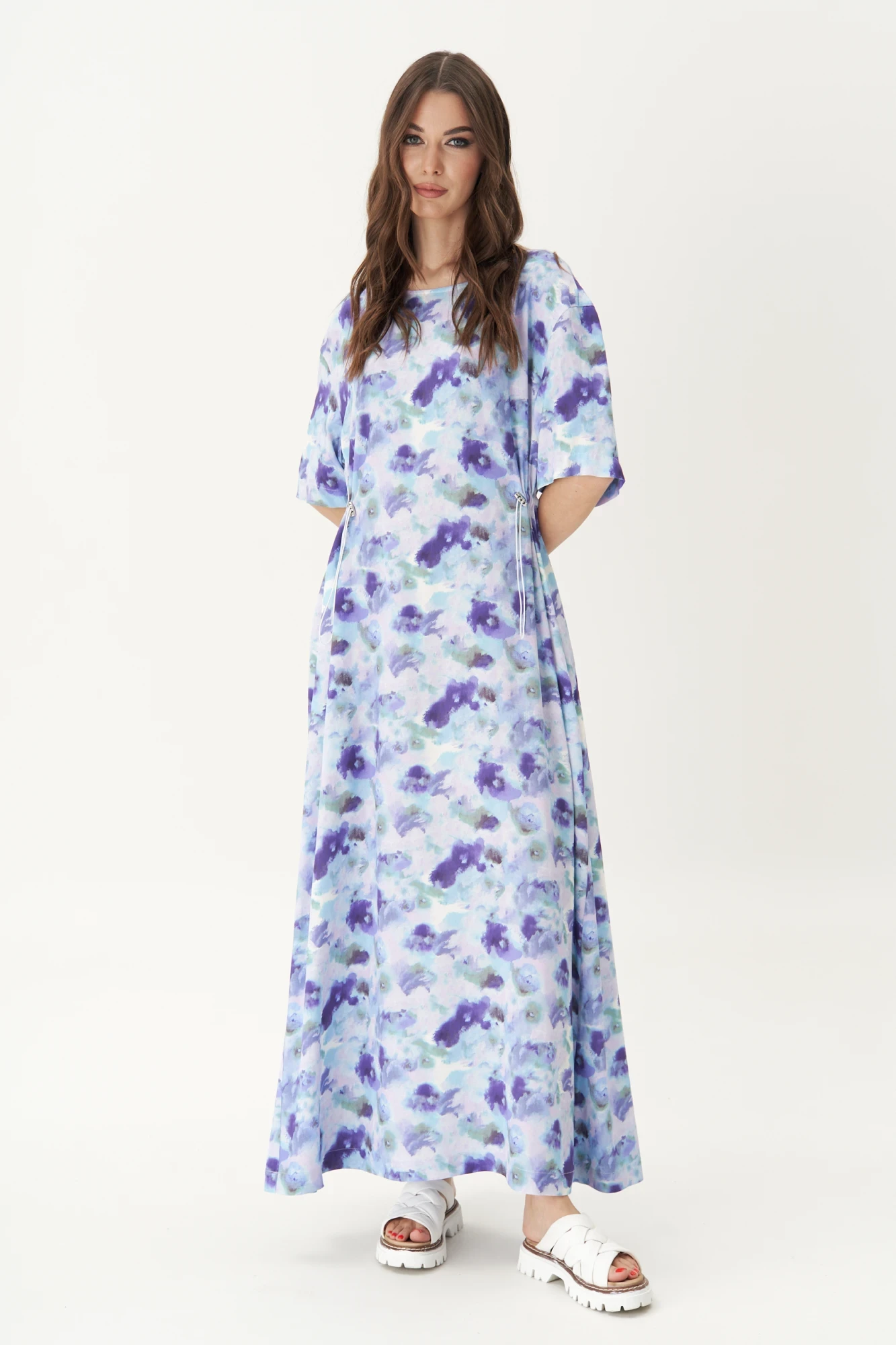 "Длинное, невероятно комфортное летнее платье, это то, что так необходимо знойным летним днём. Оно придает образу нотки романтизма и женственности. Свободный А-силуэт, рубашечный покрой, круглая горловина, рукав расширенный в области оката с эластичным шнуром и фиксаторами в области боковых швов, переходящая со спинки, частично на полочку, выше линии талии. Кулиса 100% вискоза с набивным 3Dпринтом. Мягко струится и дарит настроение лёгкости и свежести.