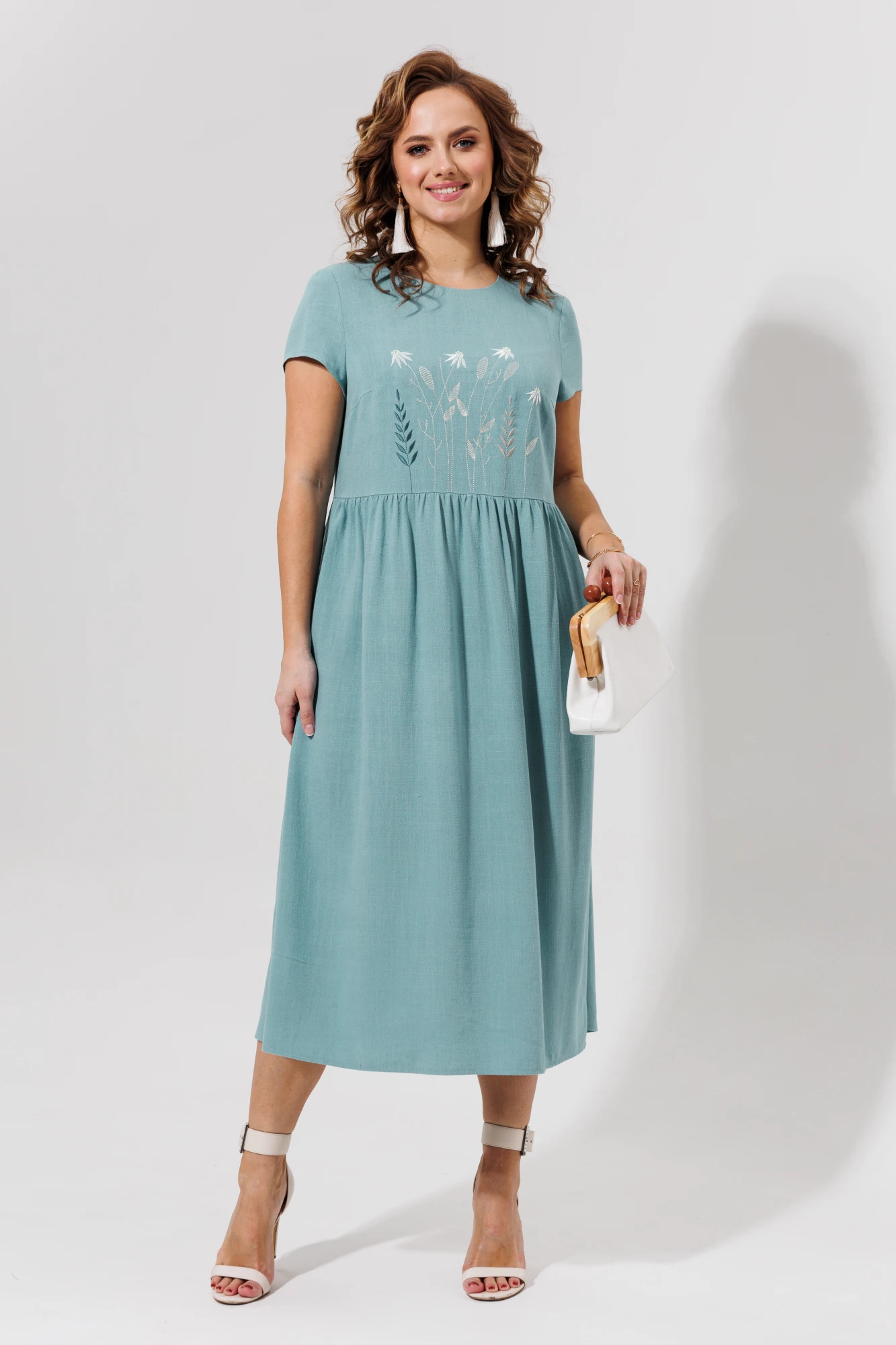 "Платье женское отрезное по линии талии, льняное.Перёд с нагрудными вытачками идущими с боковых швов.