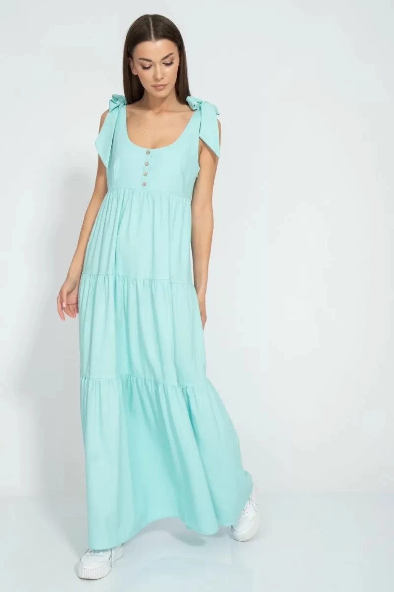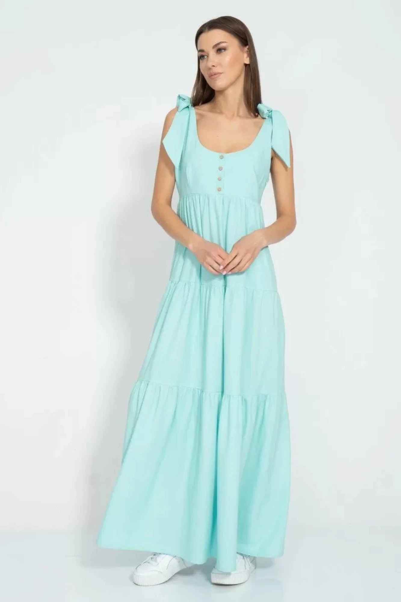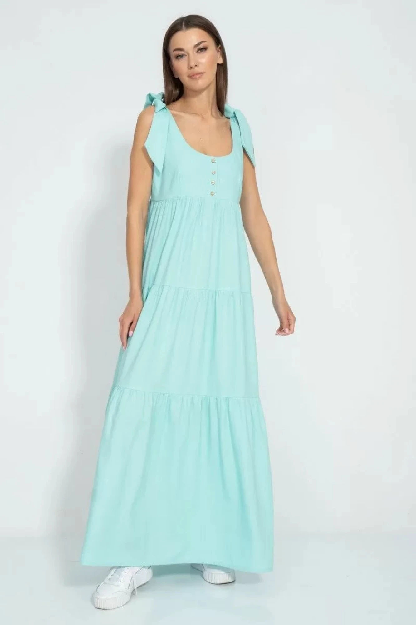 Платье удлиненное с воланами, из льна с вискозой - это стильное и комфортное платье для жаркого лета. Платье имеет прямой силуэт. Лен с вискозой - это натуральная ткань, которая хорошо дышит, приятна к телу. Платье можно сочетать с различными аксессуарами и обувью, создавая элегантные и романтические образы