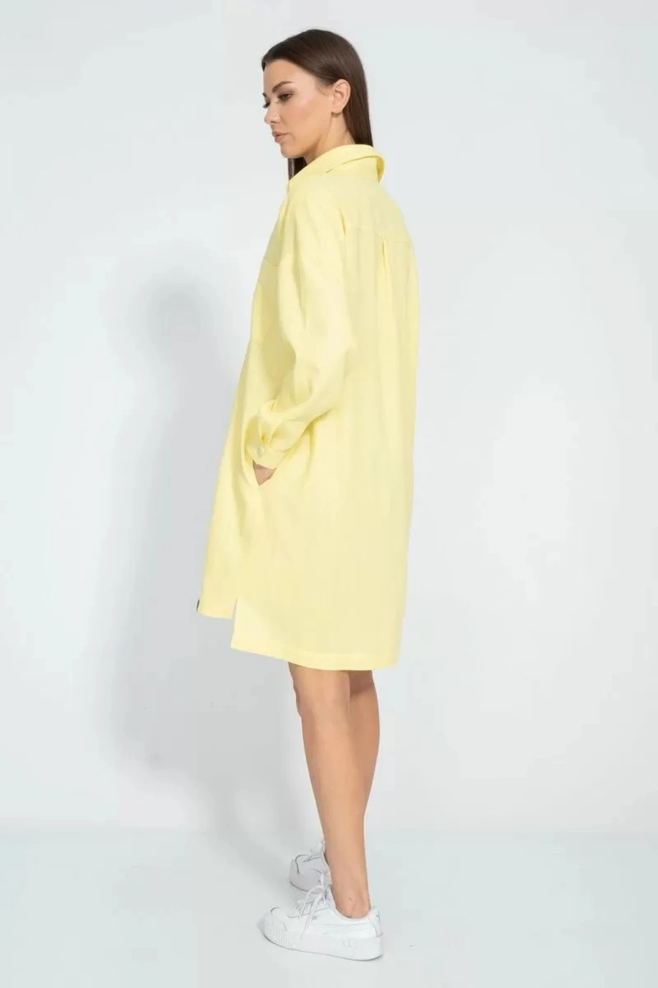 Платье-рубашка из льна с вискозой - это идеальный вариант для летнего гардероба. Платье свободного кроя, застегивается на пуговицы спереди и имеет карманы в боковых швах. Непольшие разрезы по бокам нижней части. Лен с вискозой - это натуральная ткань, которая хорошо дышит, приятна к телу. Платье-рубашка можно носить с разными аксессуарами и обувью, создавая разные образы на каждый день