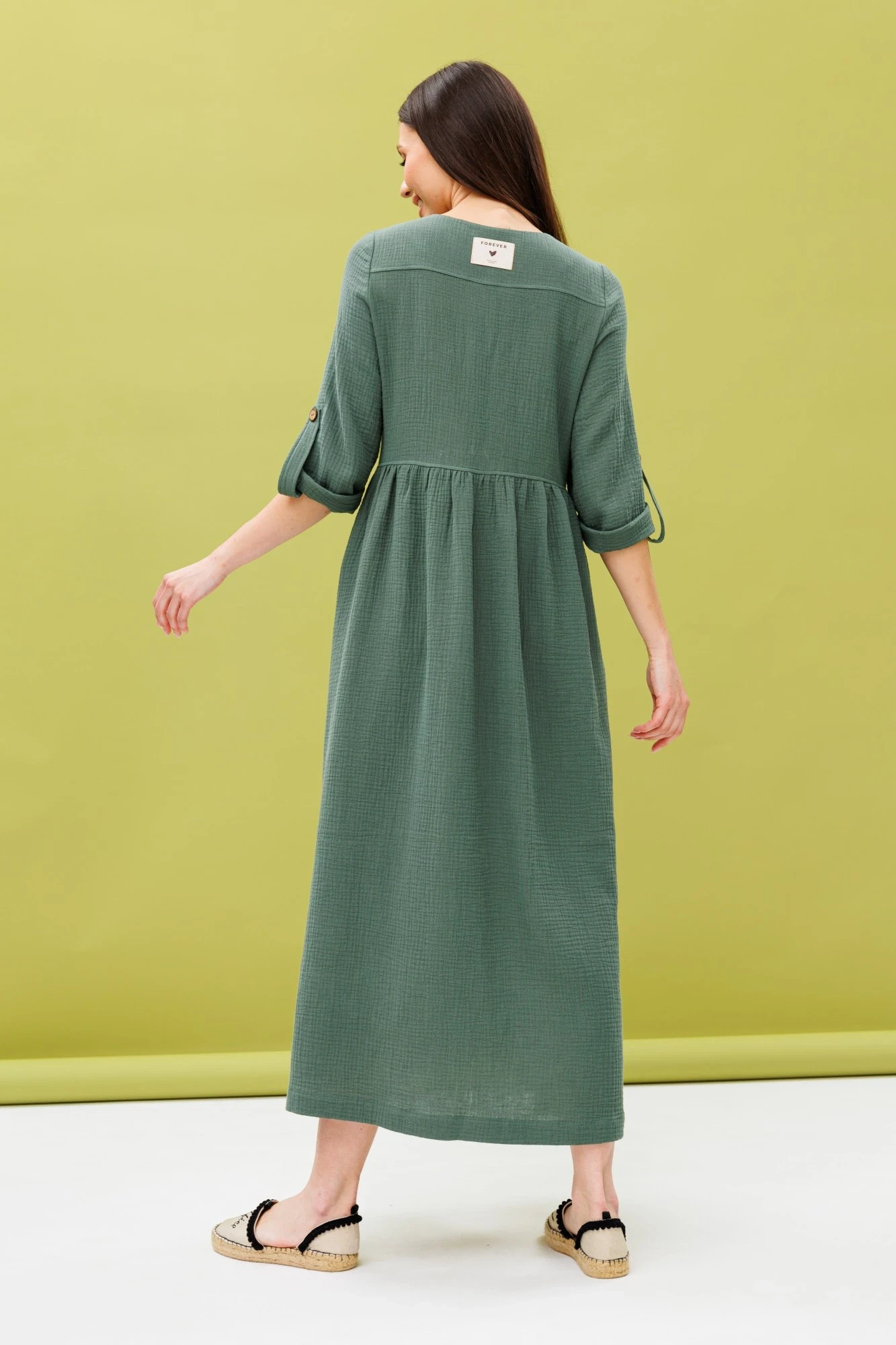 Длинное хлопковое платье Ларс Стиль 892 благородный изумруд