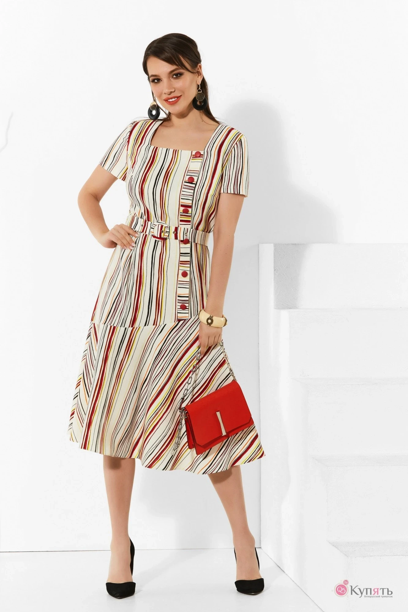 Стильное платье из натурального льна со съемным поясом и широким воланом. Платье полуприлегающего силуэта со смещенной планкой (имитация застежки). Широкий вырез карэ один из трендов сезона. Спинка со средним швом и талиевыми вытачками, застежка на потайную молнию в среднем шве спинки. Рукав втачной. Модный образ дополняет съемный пояс.