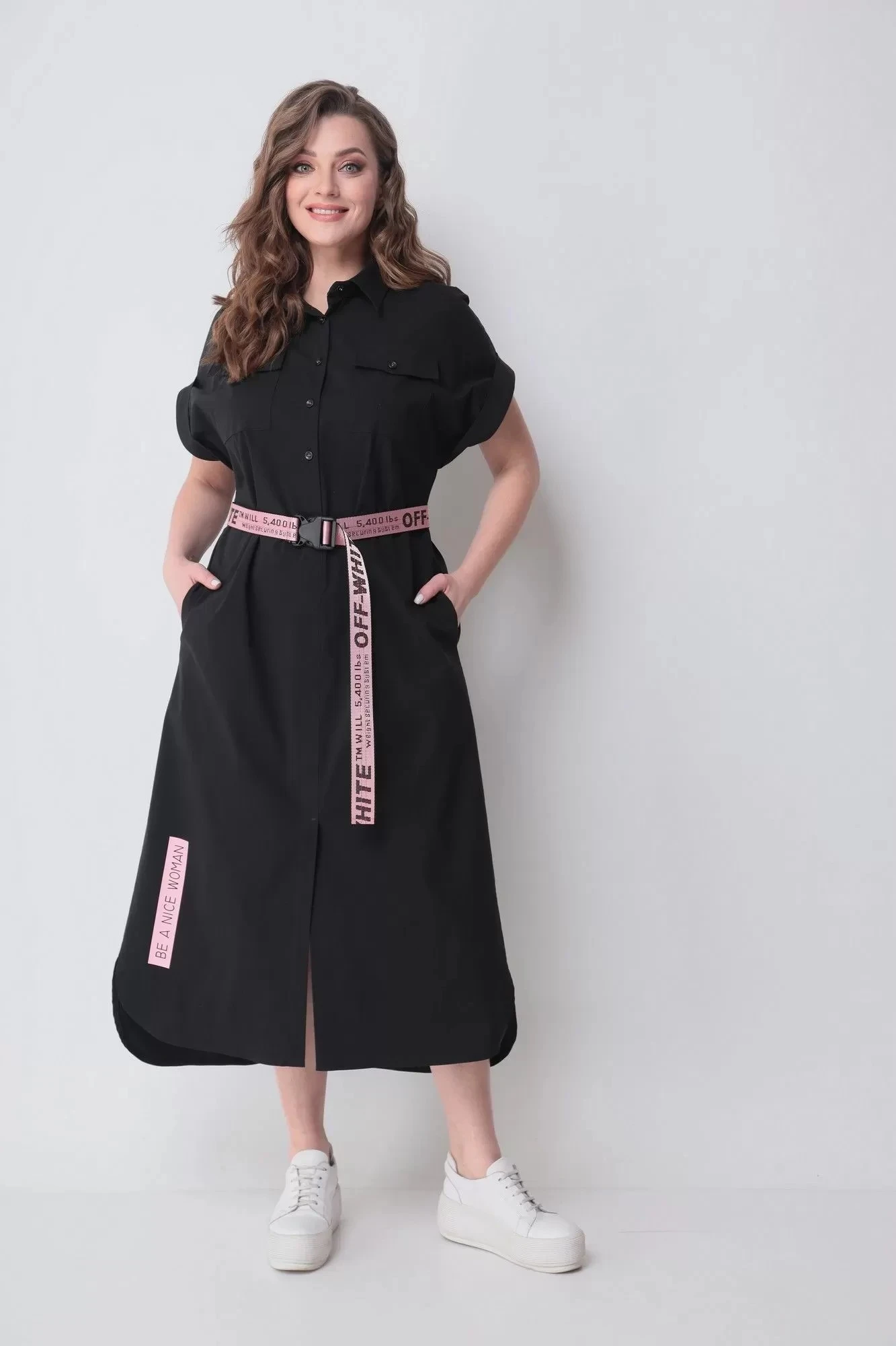 Платье рубашечного типа, свободного кроя - выполнено из струящейся, приятной на ощупь ткани лен-вишер. Универсальность кроя и легкая ткань сделают его любимым изделием Вашего гардероба в летний сезон. По переду сверху застегивается на пуговицы, снизу сбоку разрез, по спинке длиннее. Рукав короткий цельнокроеный приспущенный на отложенной манжете. Благодаря встречной складке на спинке имеет небольшое клешение. Украшением платья служит декоративный принт. По желанию фиксируется поясом из контрастной ткани, который идет в комплекте.