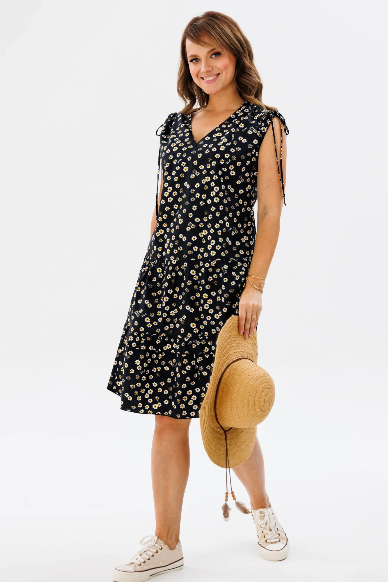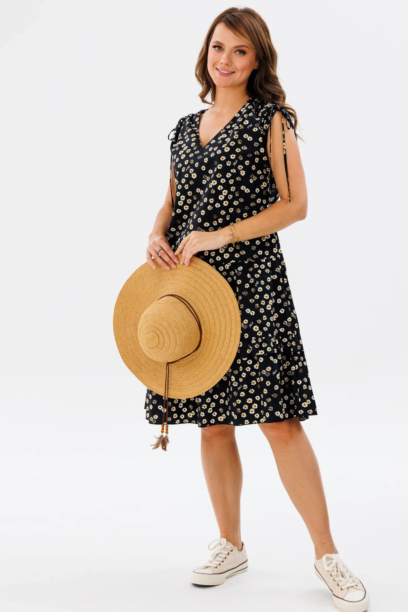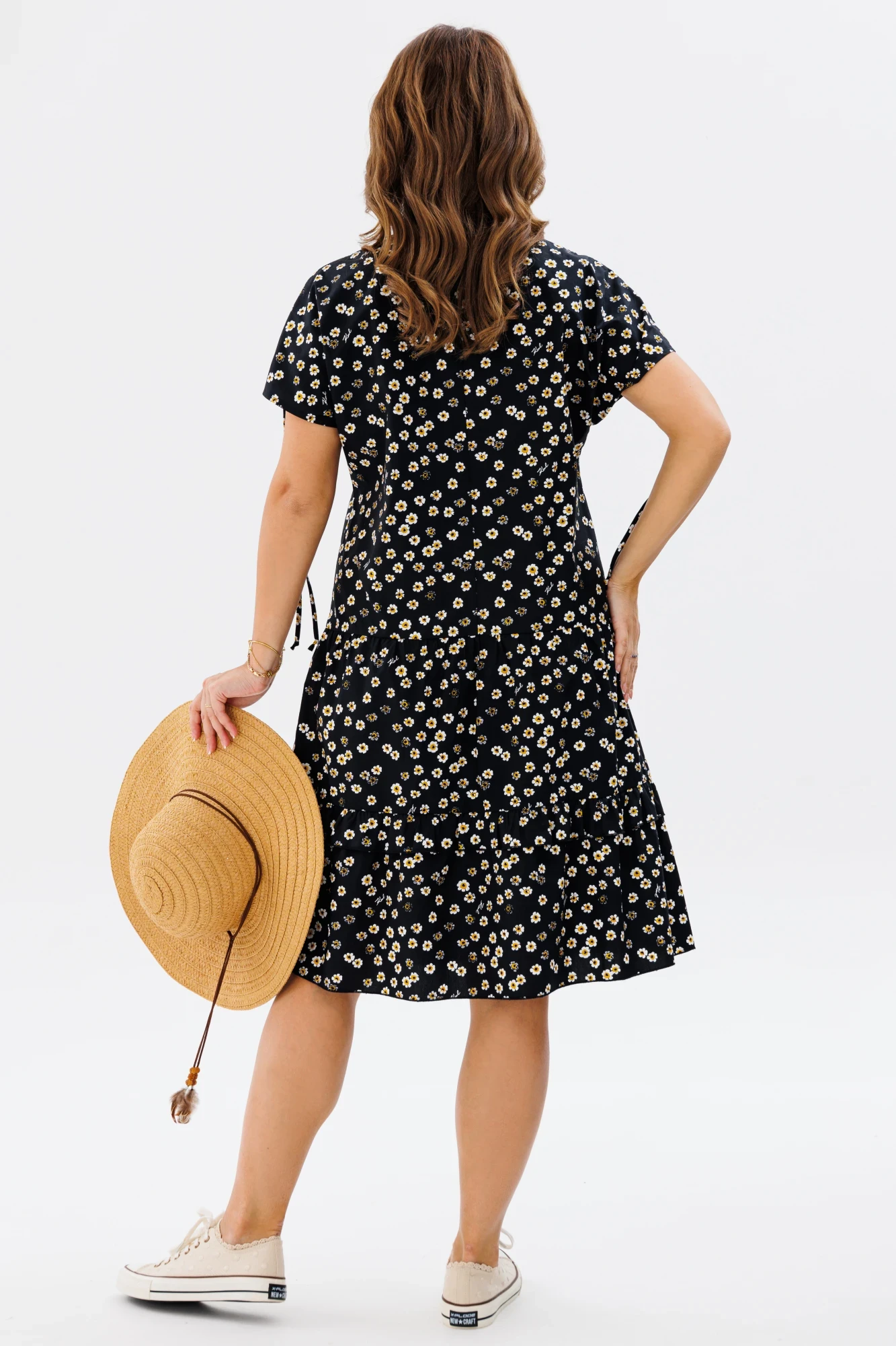 Хлопковое платье с принтом Мишель Стиль 1198 Черно-белый