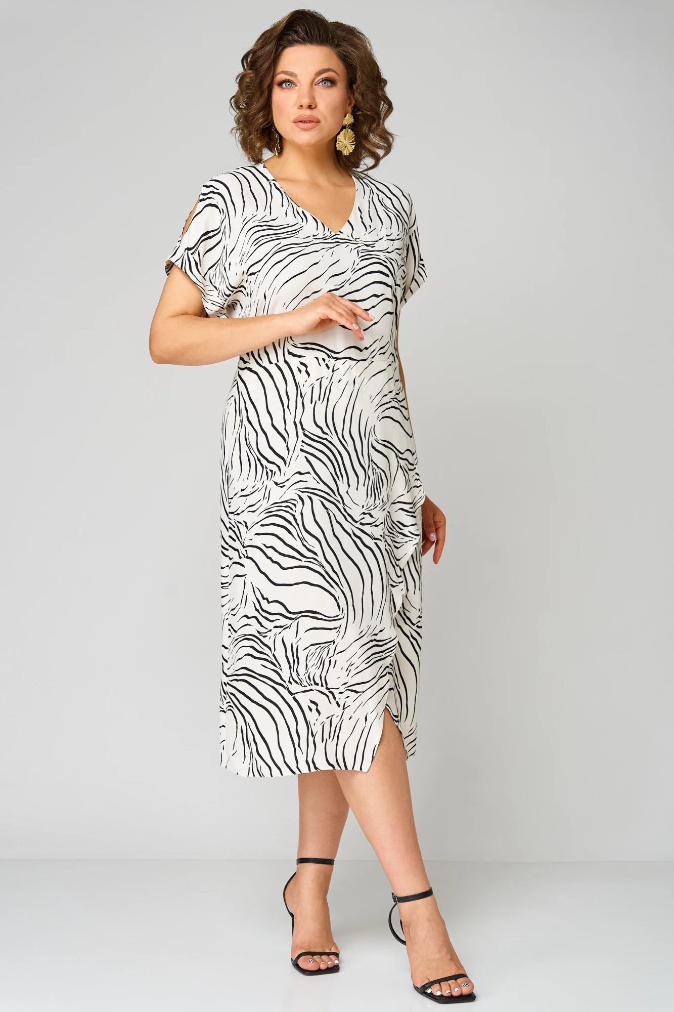 Платье, которое подчеркнет ваши формы и скроет недостатки, а интересный принт добавляет изысканность вашему образу. V-образный вырез горловины и запах по нижней части выигрышно корректирует и вытягивает фигуру. Рукав цельнокроеный с разрезом и манжетой понизу. Образ дополняет оригинальный ремень. Длина платья 115 см, длина рукава от горловины 29 см