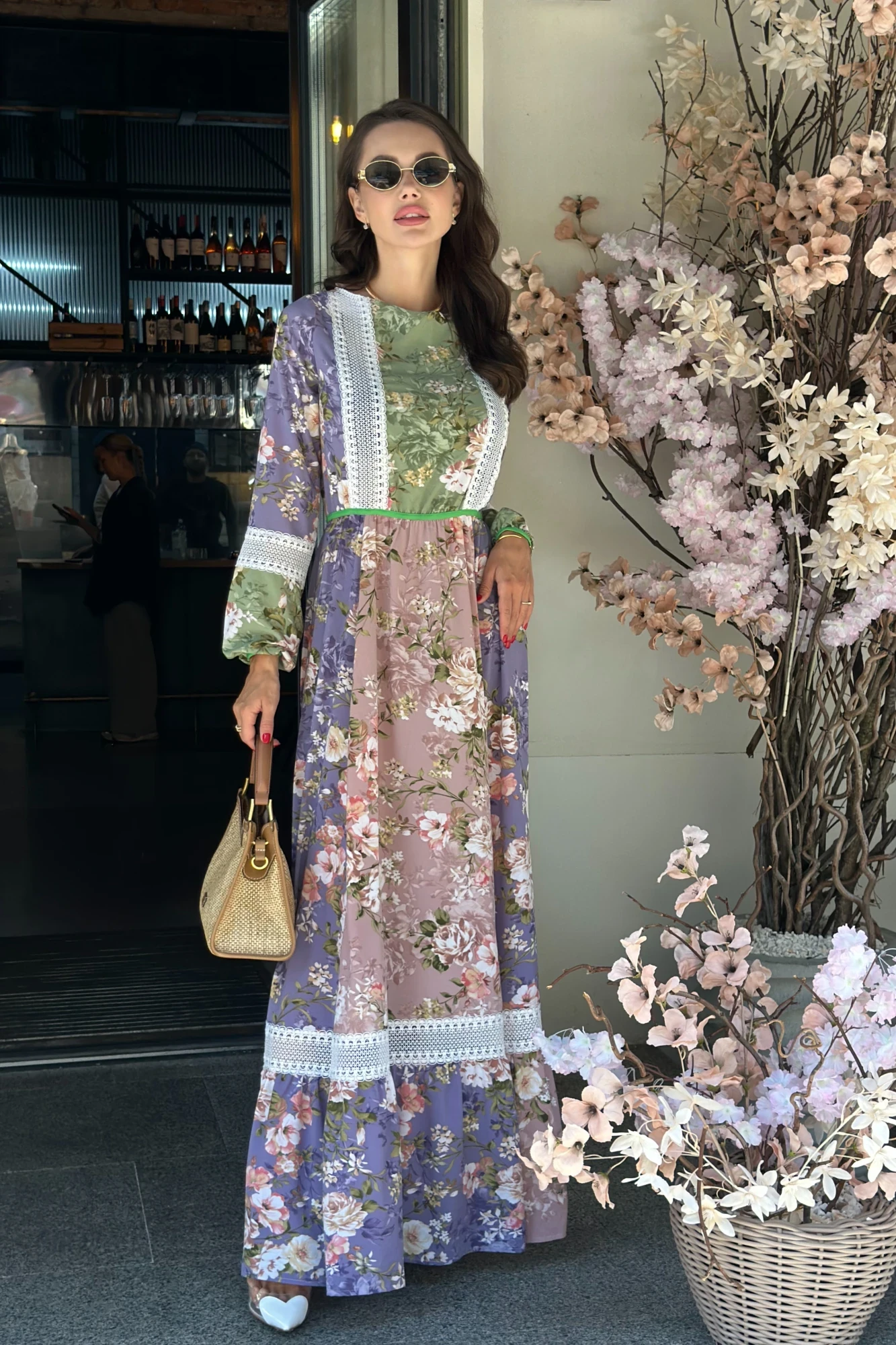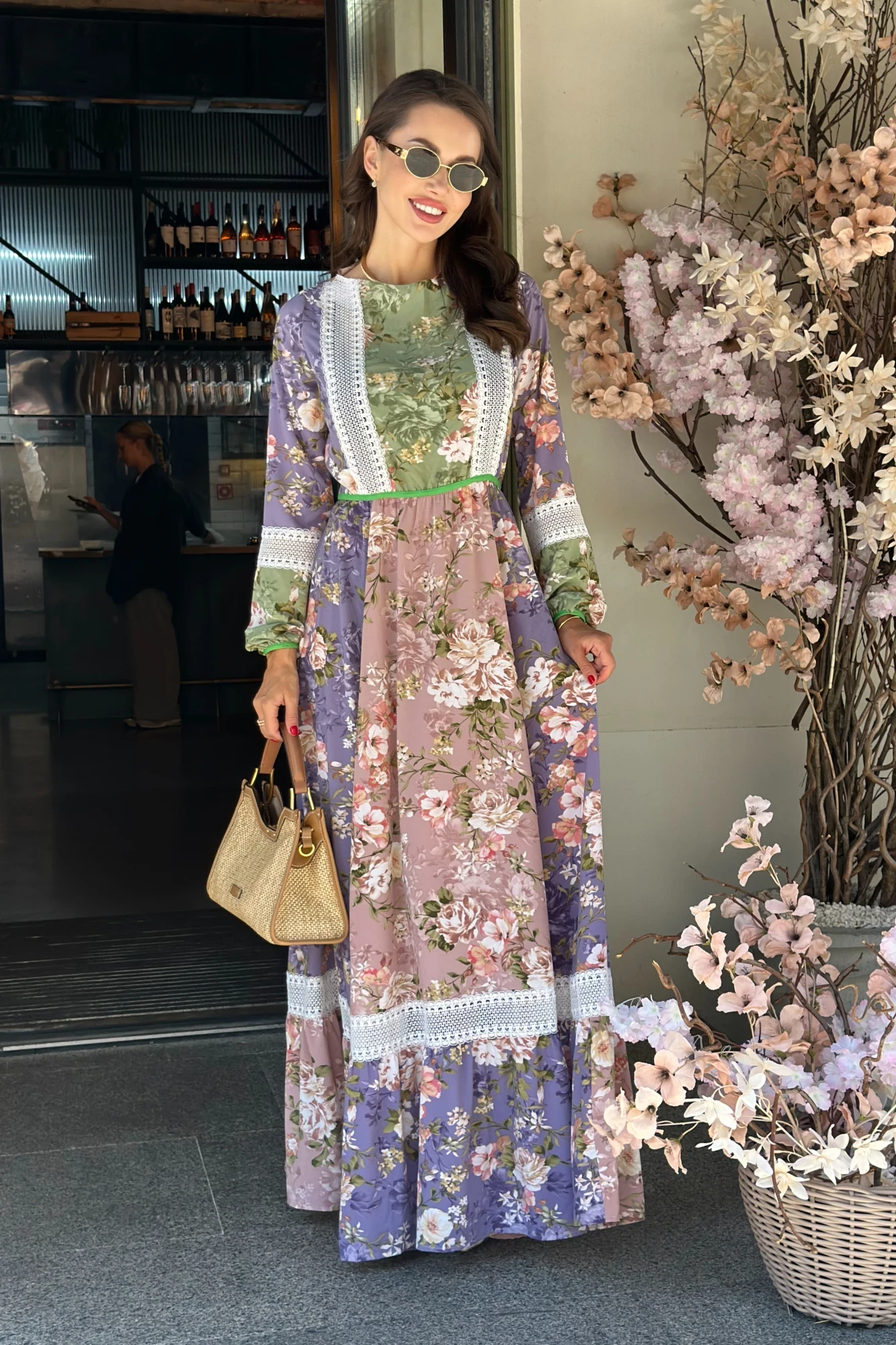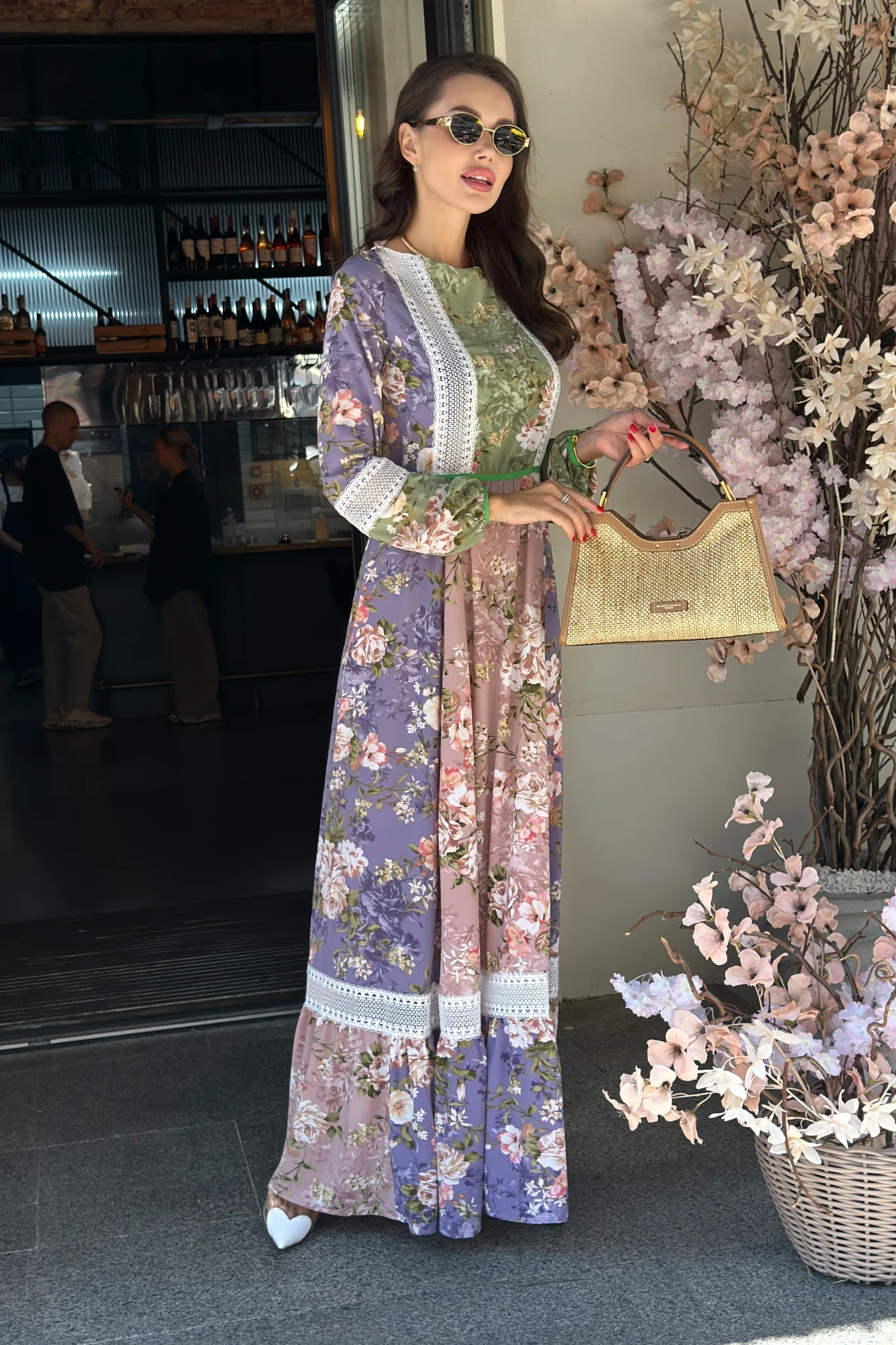 Модель платья вдохновлена природой и свободой. В центре внимания - легкое и воздушное платье макси с кружевными вставками, дополненное ярким пояском на талии.