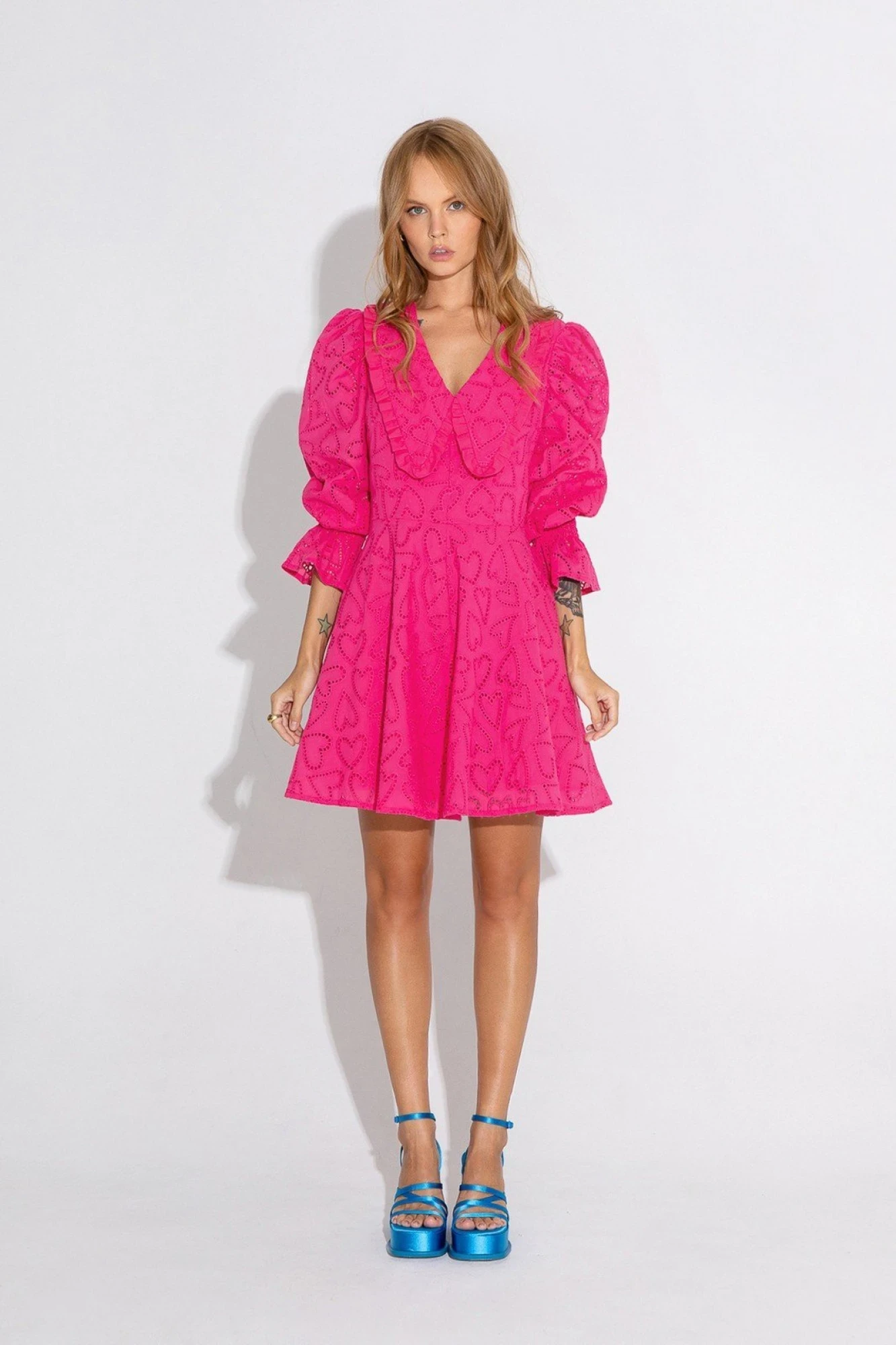 Детали: полуприлегающий силуэт, отрезная линия талии, вытачки, потайная молния в боковом шве, длинные пышные рукава со сборкой и резинкой по низу, боковые карманы, лиф платья и юбки на подкладке