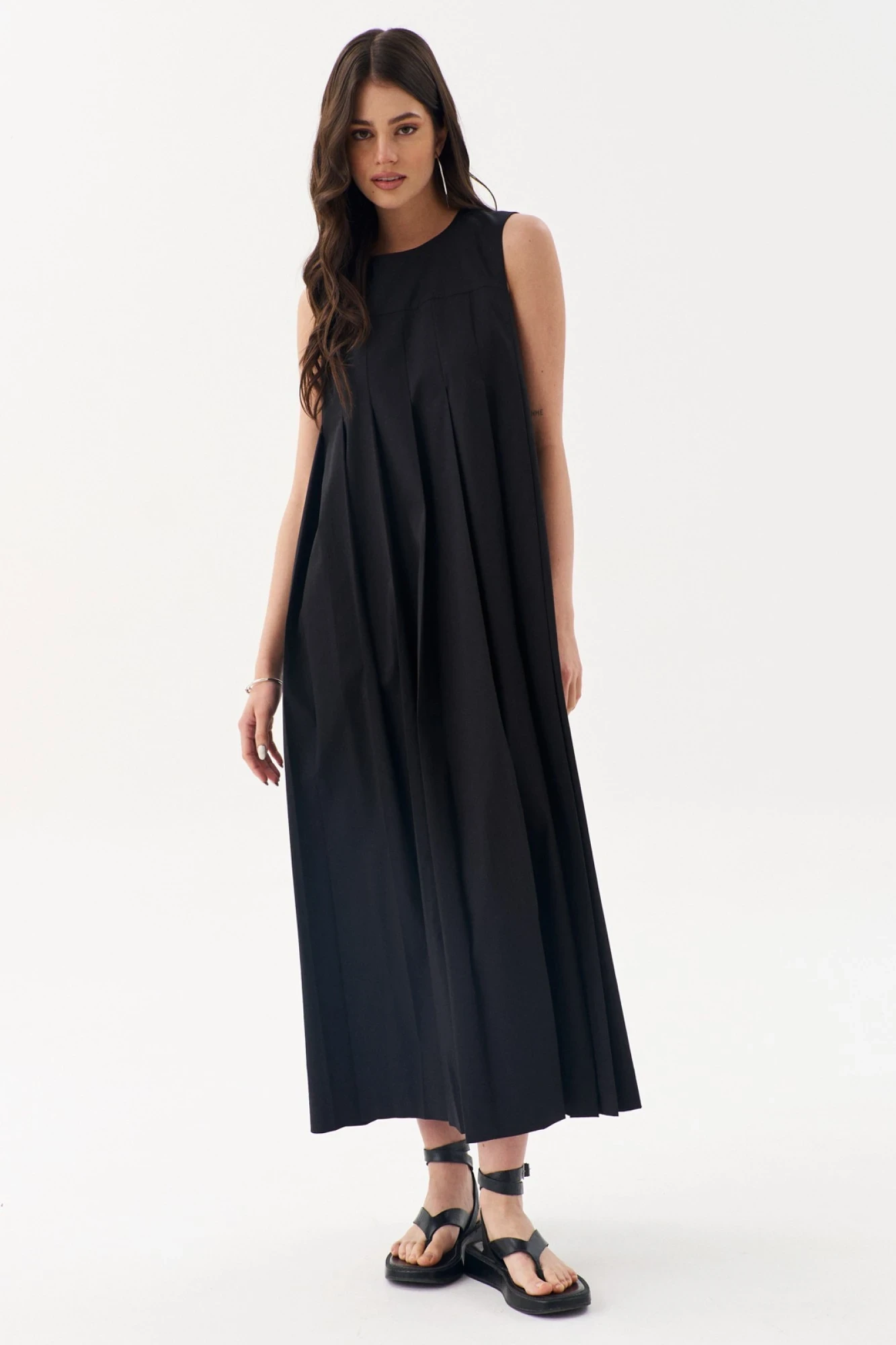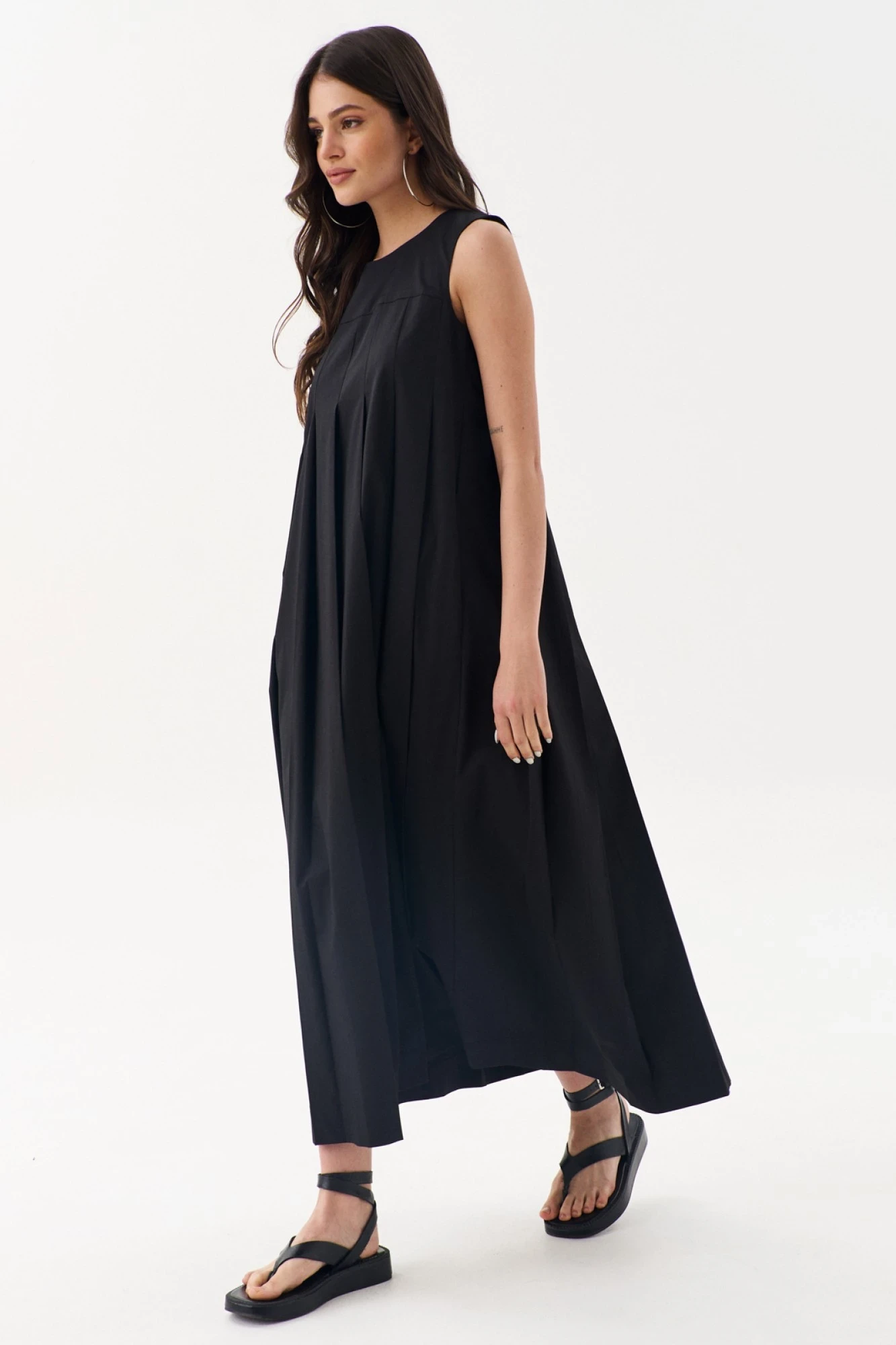 •по переду и спинке притачные кокетки и декоративные складки •по спинке застежка на молнию •в боковых швах карманы •длина макси"