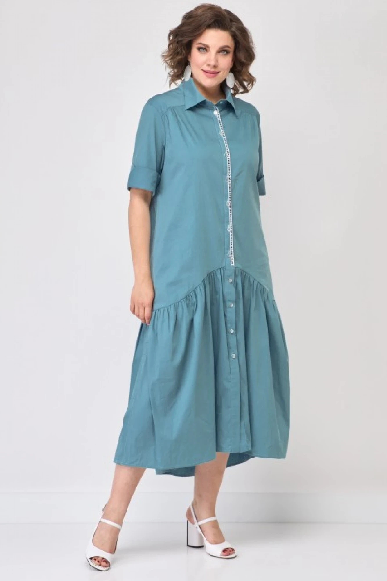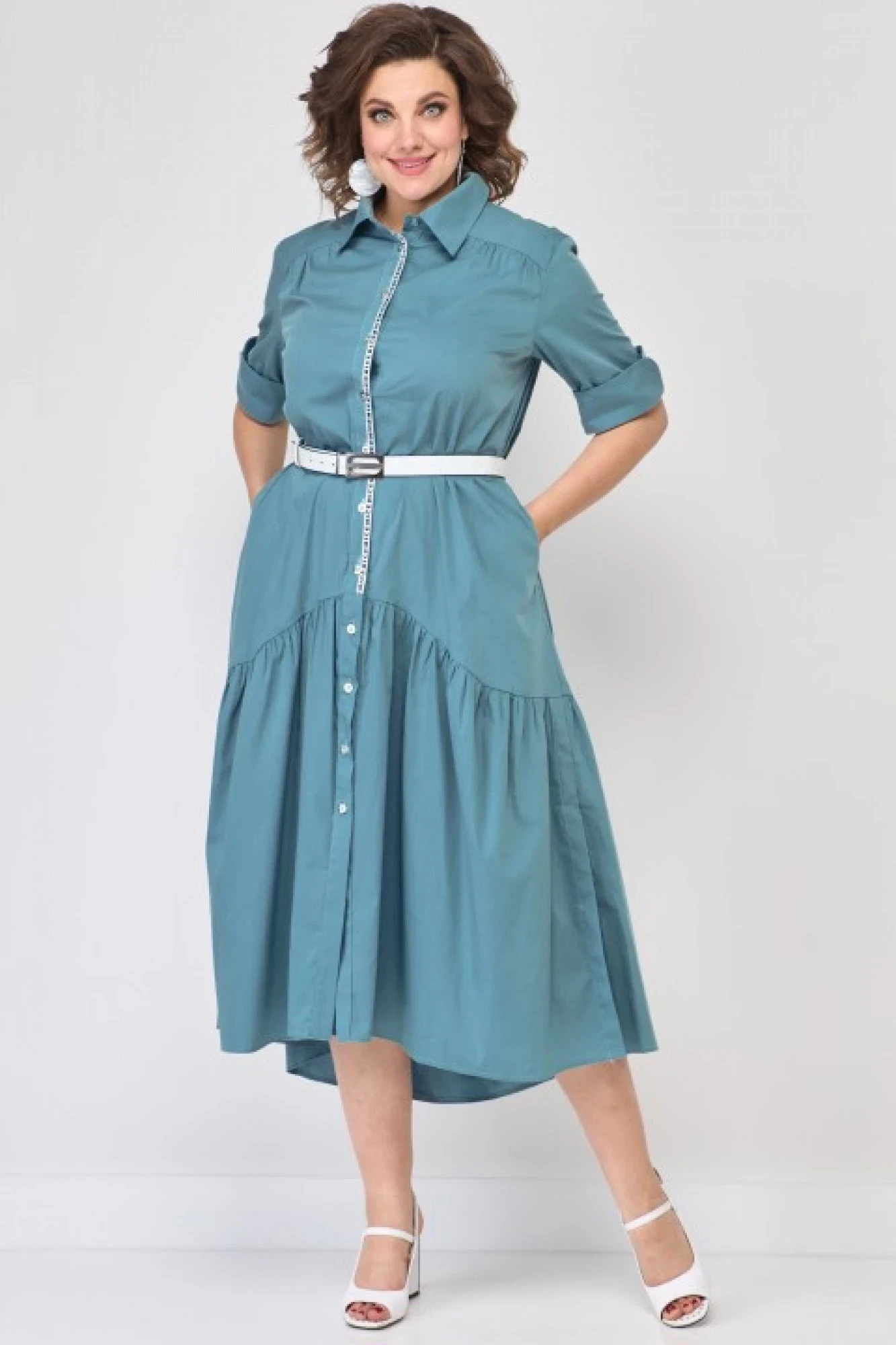 Платье- халат в стиле бохо для современных женщин свободного кроя. По низу изделия идет широкий волан, по переду планка с застежкой на пуговицах. Планка украшена тесьмой. Воротник рубашечного типа на стойке. Рукав втачной с широкой манжетой. Длина регулируется за счет манжеты. Низ изделия ассиметричный, чуть длиннее сзади. Платье можно носить с ремешком, можно без ( в комплект не входит, цена указана без стоимости ремешка)