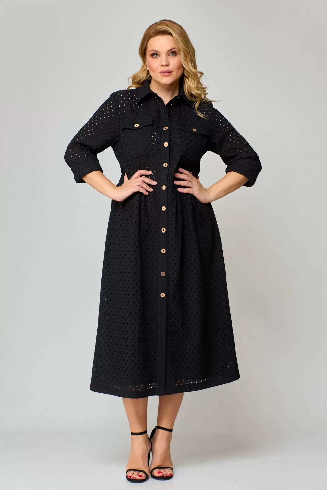 Платье-рубашка может стать находкой для тех, кто ищет базовое платье на каждый день. Причем оно «работает» в самых разных ситуациях: надеть его можно и на работу в офис, и на ужин с друзьями, и на расслабленную летнюю прогулку по улочкам города. Нужное настроение в образ привнесут аксессуары: сумка и обувь. Платье длиной макси, выполнено из хлопковой ткани "ришелье" с модным дизайном вышивки. Полочка платья с отрезной верхней частью и притачной нижней частью со сборкой. Юбка на подкладке. В области груди настрочены накладные карманы с клапанами. Воротник рубашечного типа стояче-отложной, на отрезной стойке. В боковых швах обработаны карманы. Рукав рубашечного типа, длинный, одношовный, по низ рукава на притачной манжете с застежкой на петли и пуговицы. ВАЖНО : стирка при 30 градусах!