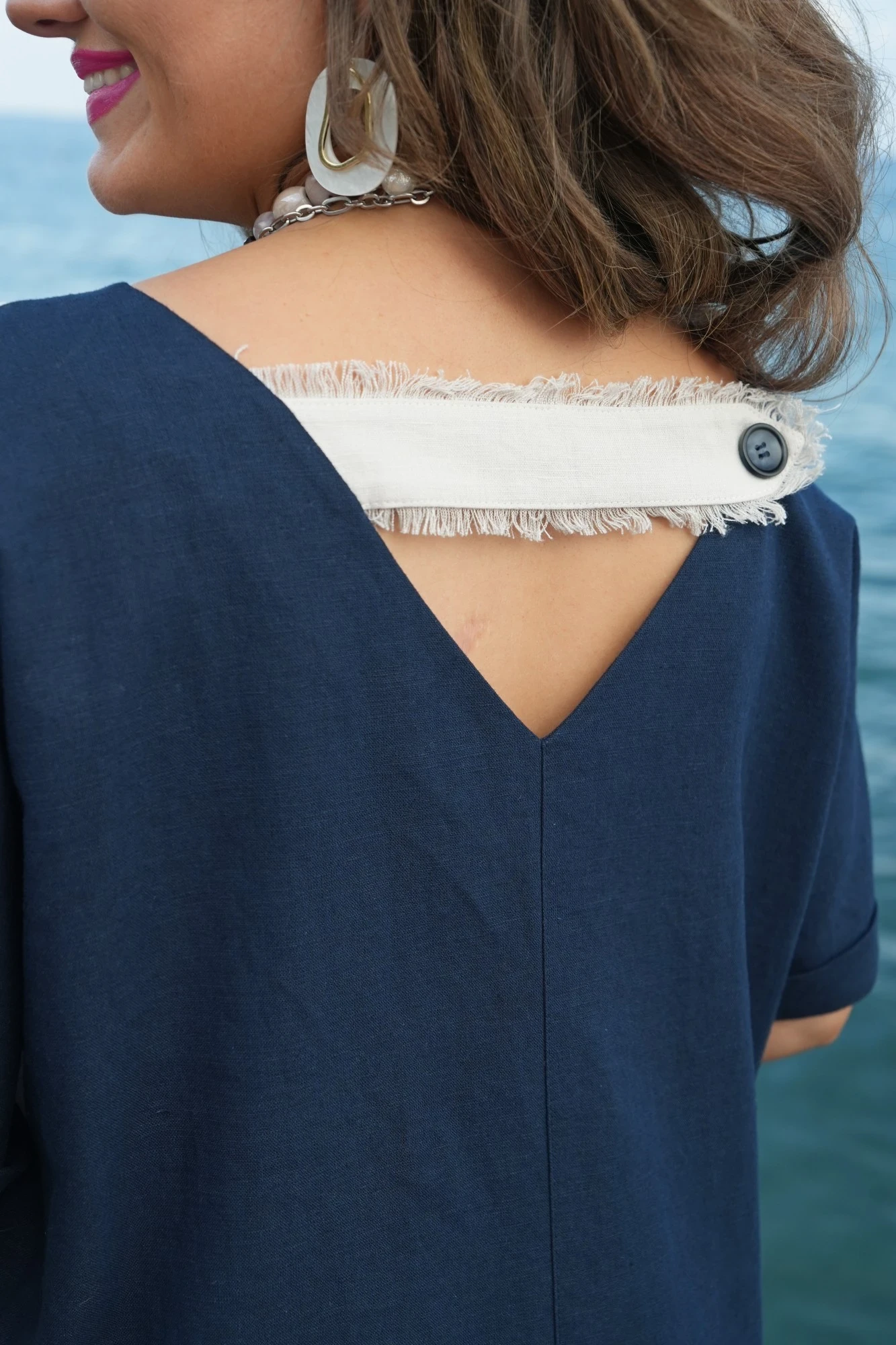 Льняное платье Vittoria Queen 20643 т.синий+молочный