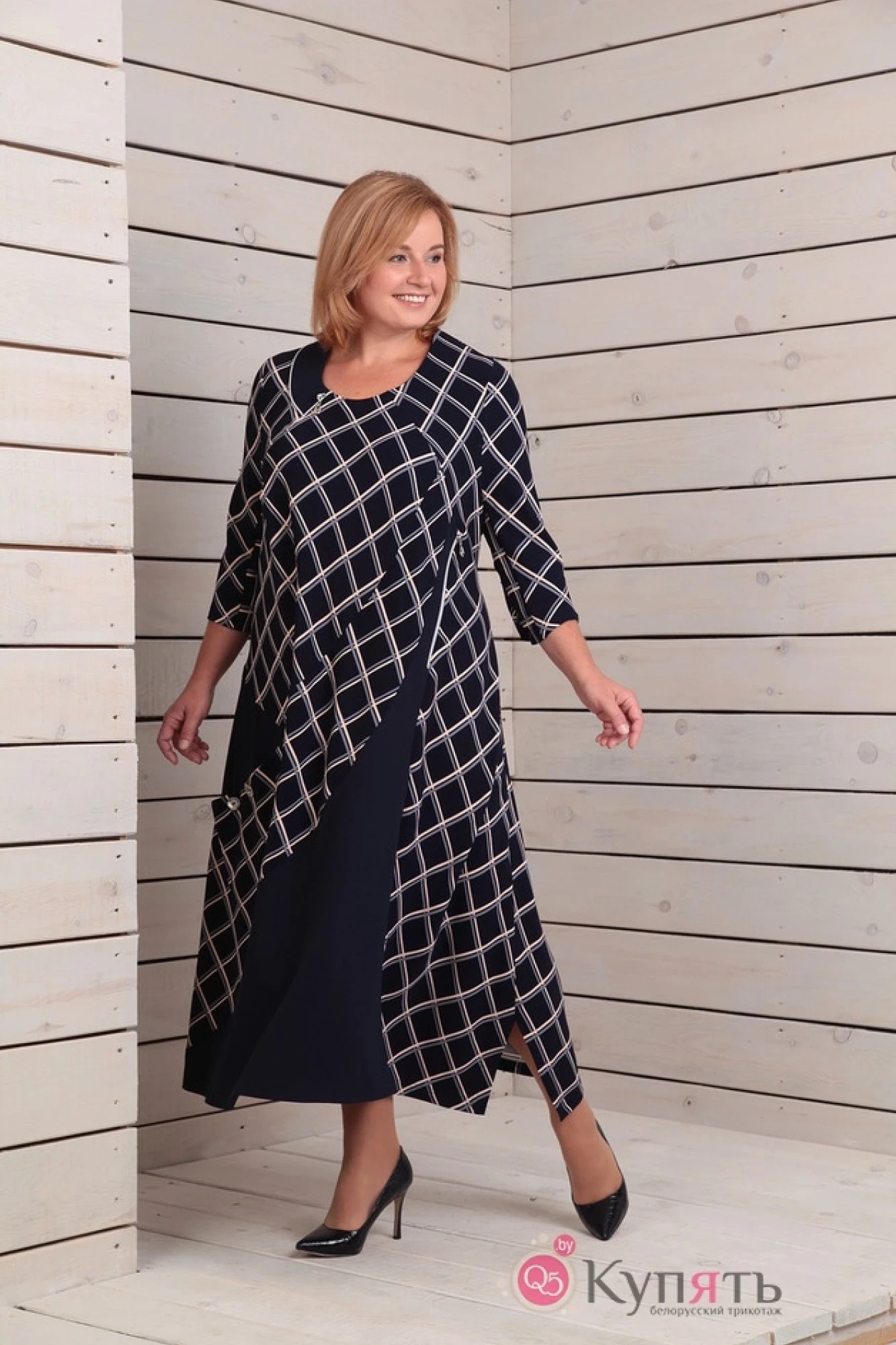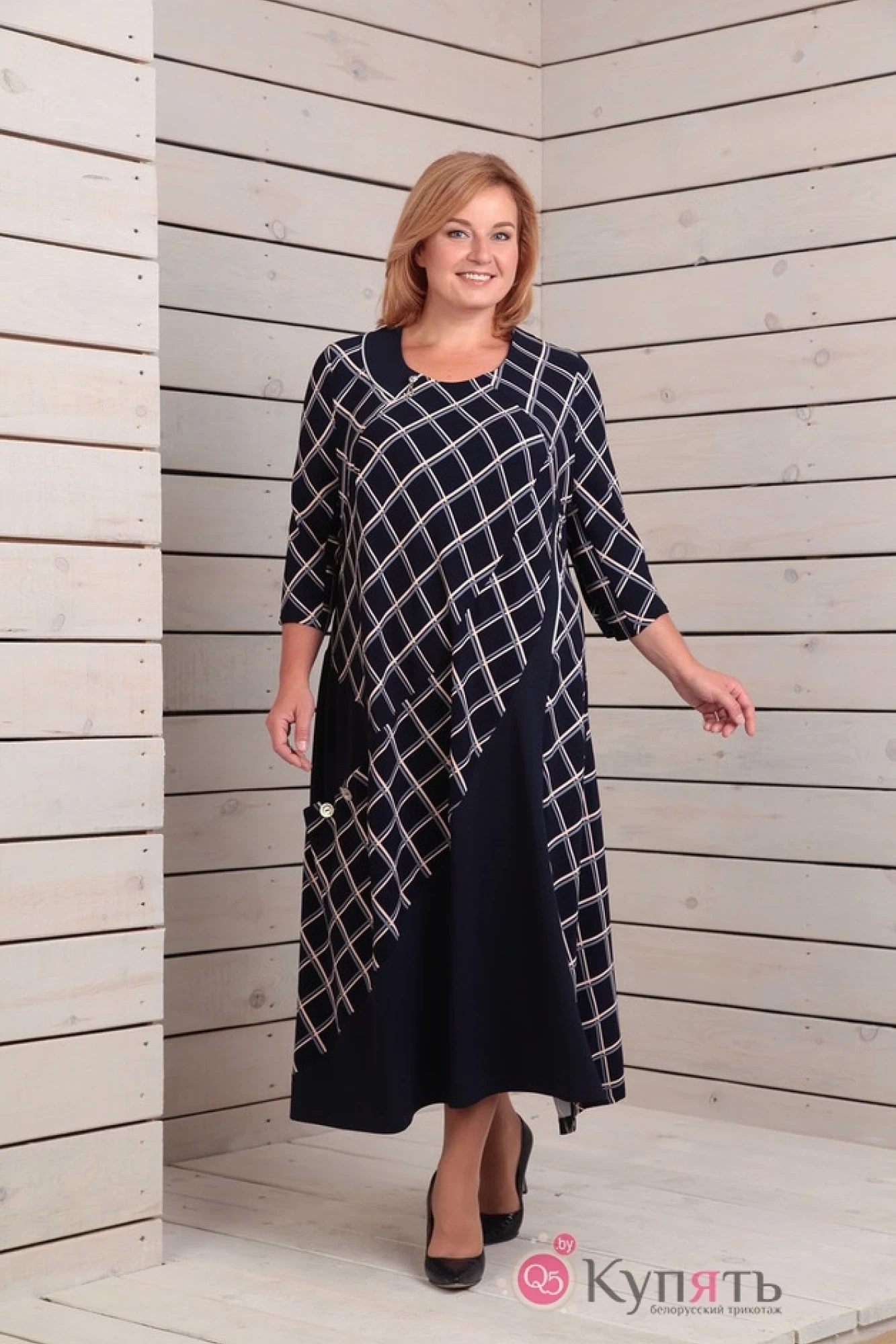 Трикотажное повседневное платье полуприлегающего силуэта от талии расширенного к низу и фигурным низом. Спинка со средним швом. По переду фигурные детали до низа.Справа карман на 2 петли пуговицы.Справа нагрудная выточка,слева-фигурный рельеф со вставкой с декоративной молнией. По горловине отрезные детали:справа- вставлена молния.Горловина круглая. Рукав 3/4,двухшовный с разрезом по локтевому шву. При соответствующей бижутерии платье становится нарядным.