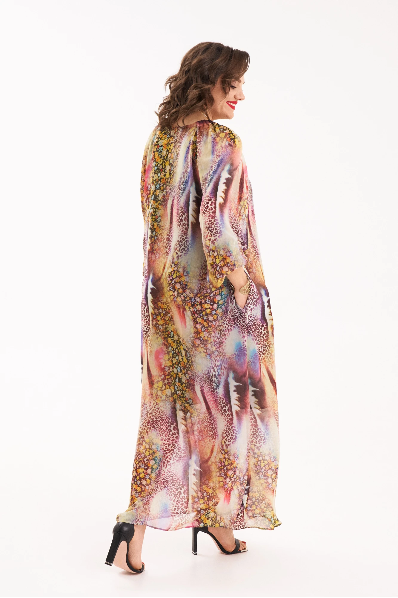 . Длина платья по спинке 141 см, длина рукава с манжетой 70 см от горловины.