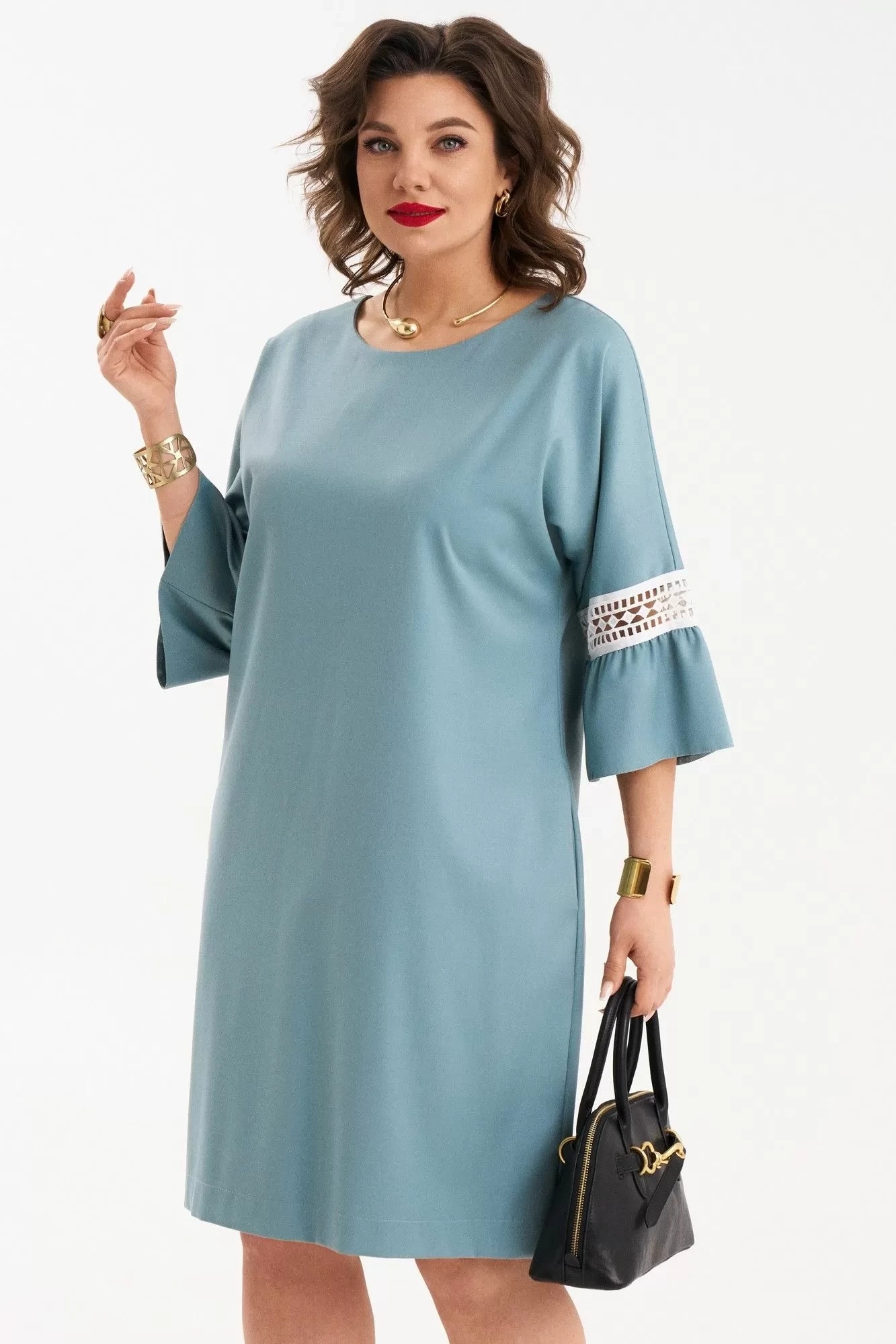 "Платье женское полуприлегающего силуэта, зауженное к низу. Спинка со средним швом, в котором расположена застежка на потайную тесьму-молнию вверху, а внизу - разрез. Вырез горловины овальный. Линия плеча спущена. По проймам в качестве декора расположена притачная кружевная тесьма, к которой притачан волан, собранный на сборку. В боковых швах платья расположены карманы. Платье очень женственное, удобное, не сковывает движения, может подойти на все случаи в жизни, как для вечерних прогулок по городу, так и для торжеств, и для работы.
