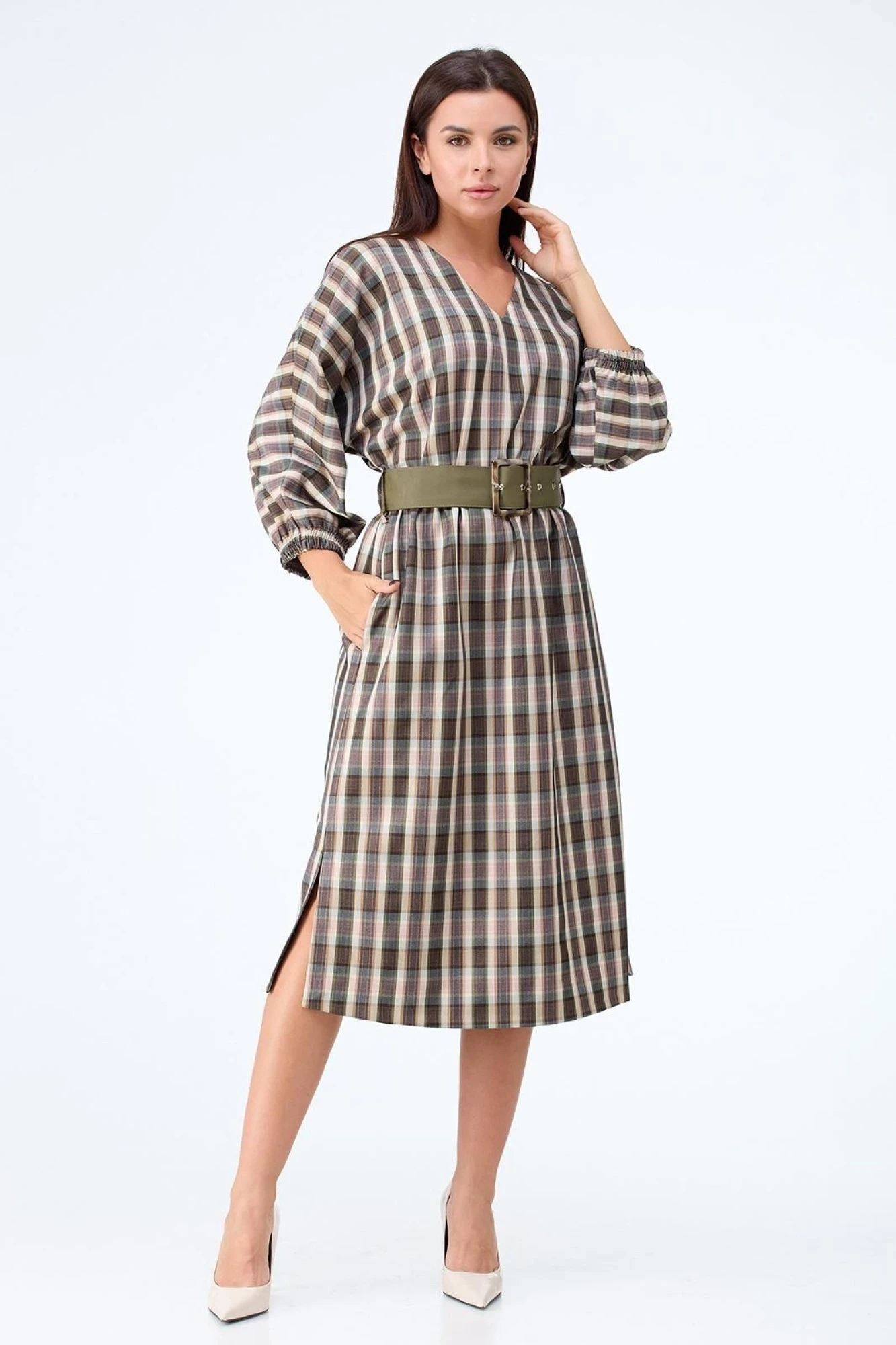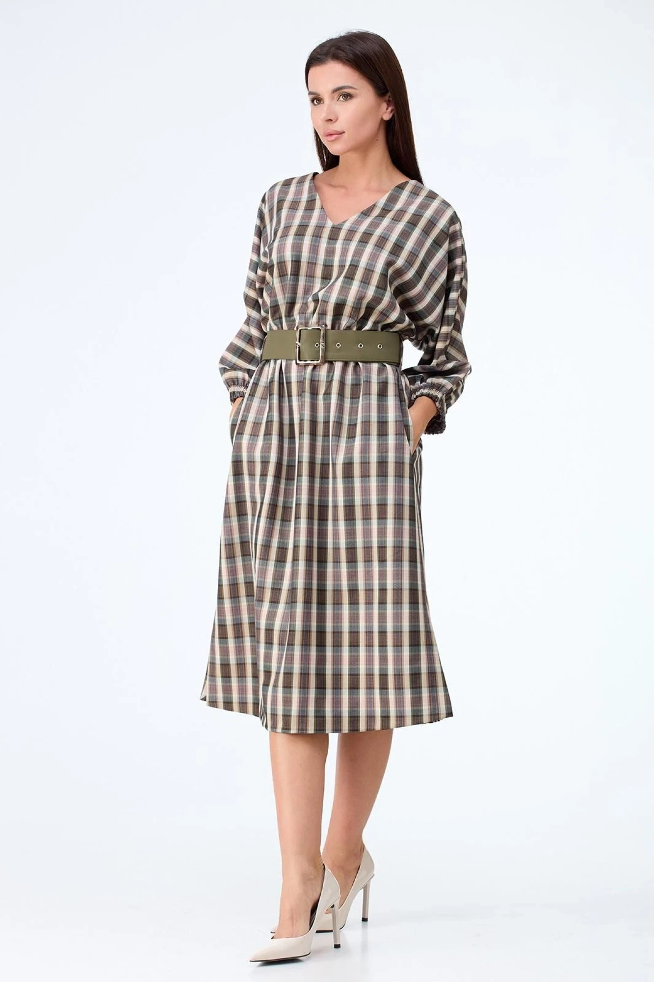 Платье из ткани с принтом «в клетку»красивых осенних оттенков.