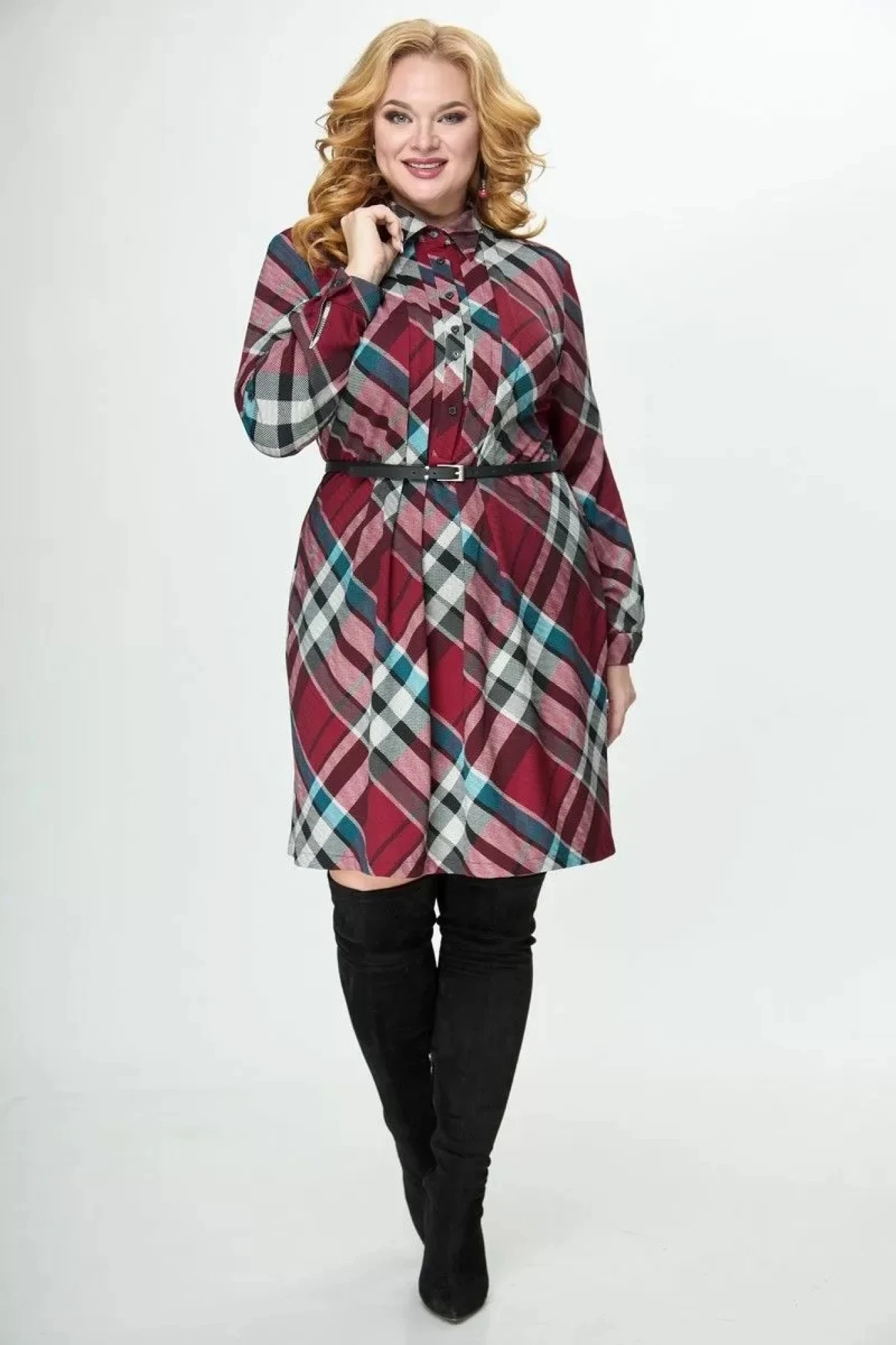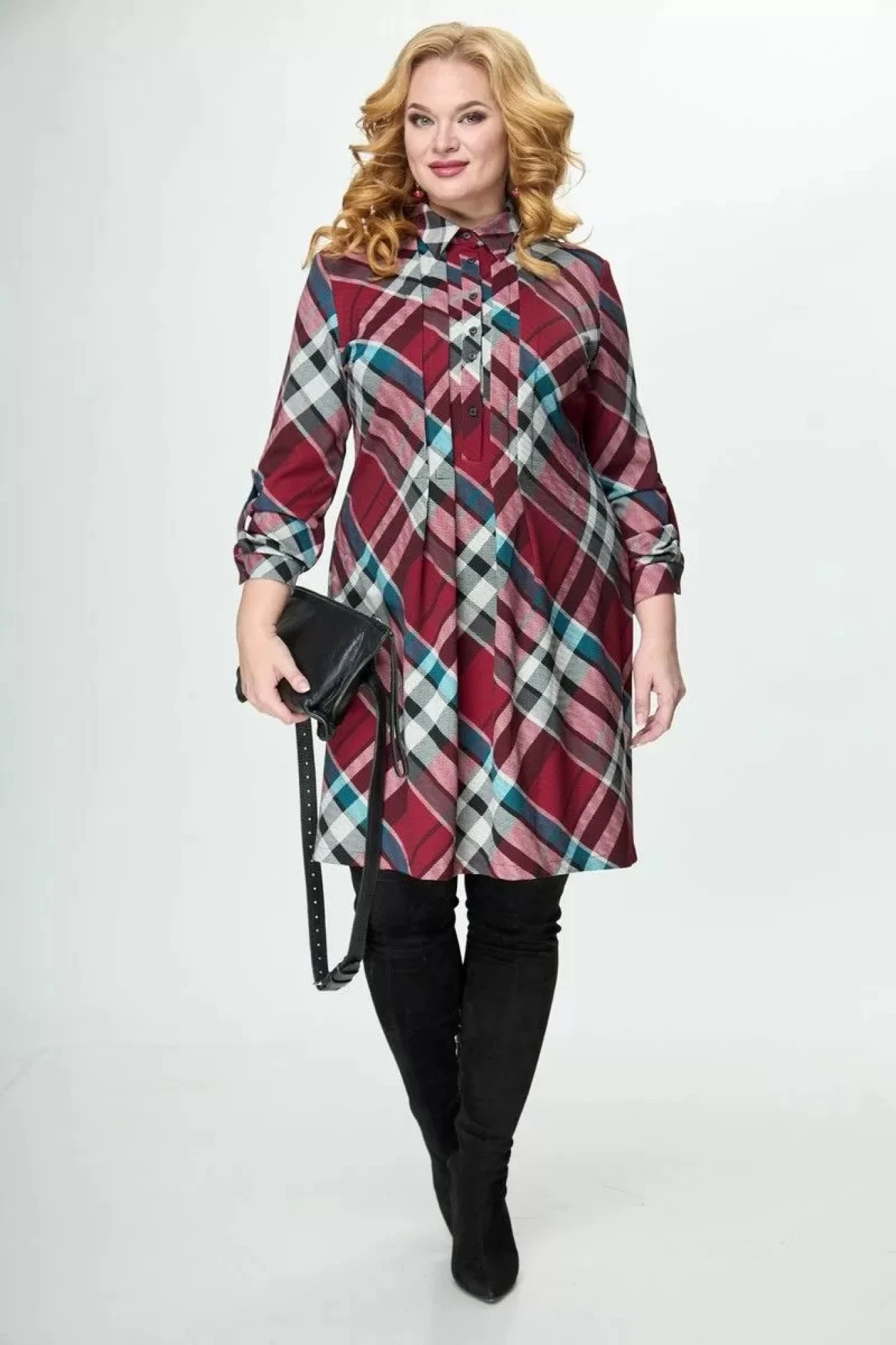 Платье прямого силуэта из принтованного полотна «в клетку».