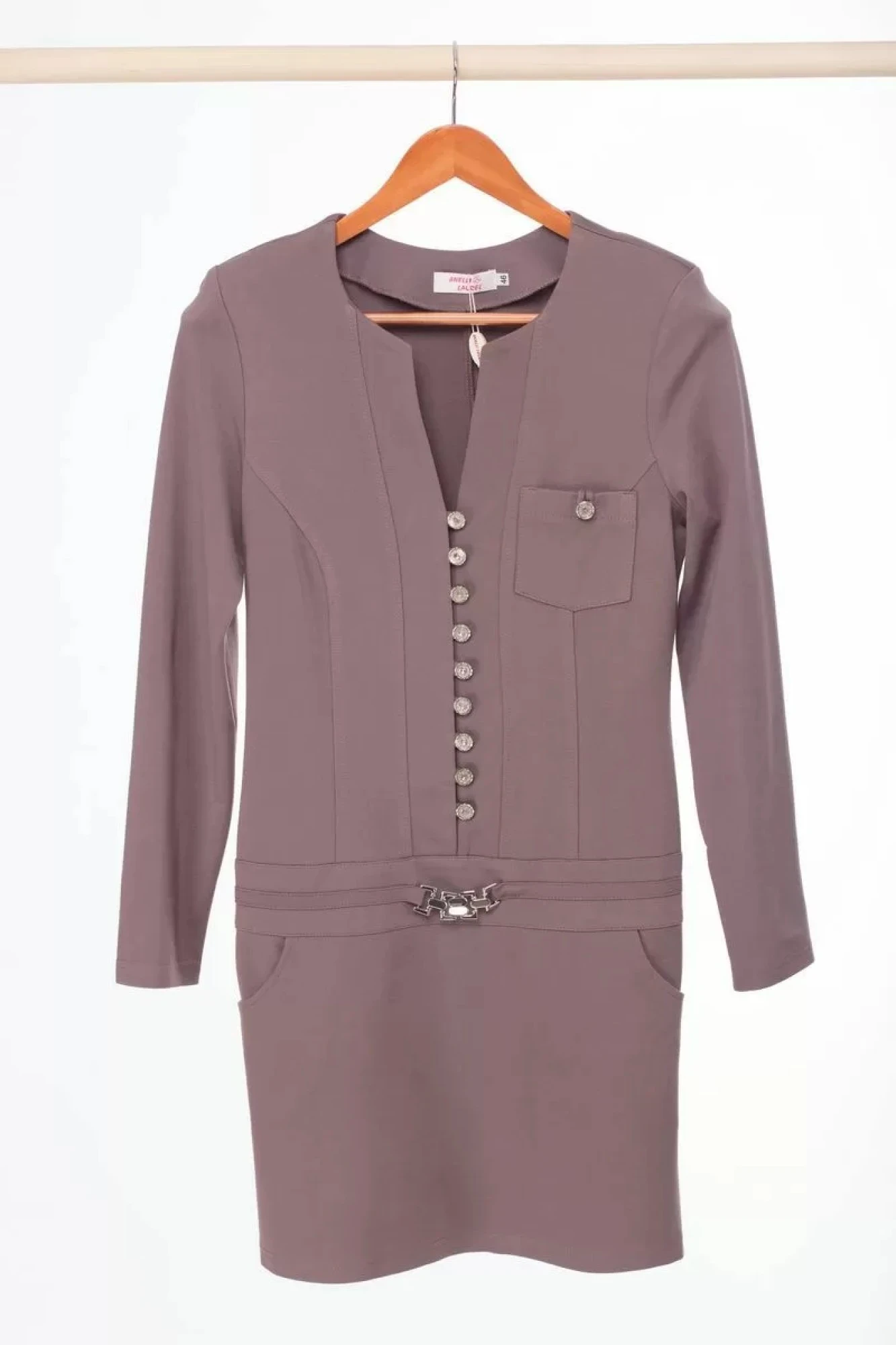 Стройные рельефы, функциональные карманы, застежка на навесные петли по переду, отрезное по линии бёдер, втачные рукава.