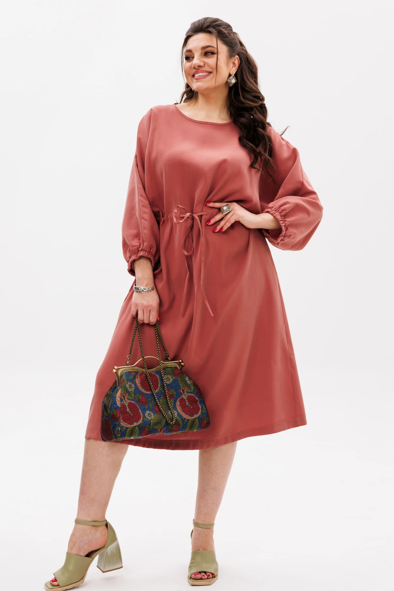 Актуальная длина миди делает это платье подходящим как для повседневных прогулок, так и для особых случаев. Изготовлено из приятной на ощупь ткани, оно дарит ощущение комфорта на протяжении всего дня.