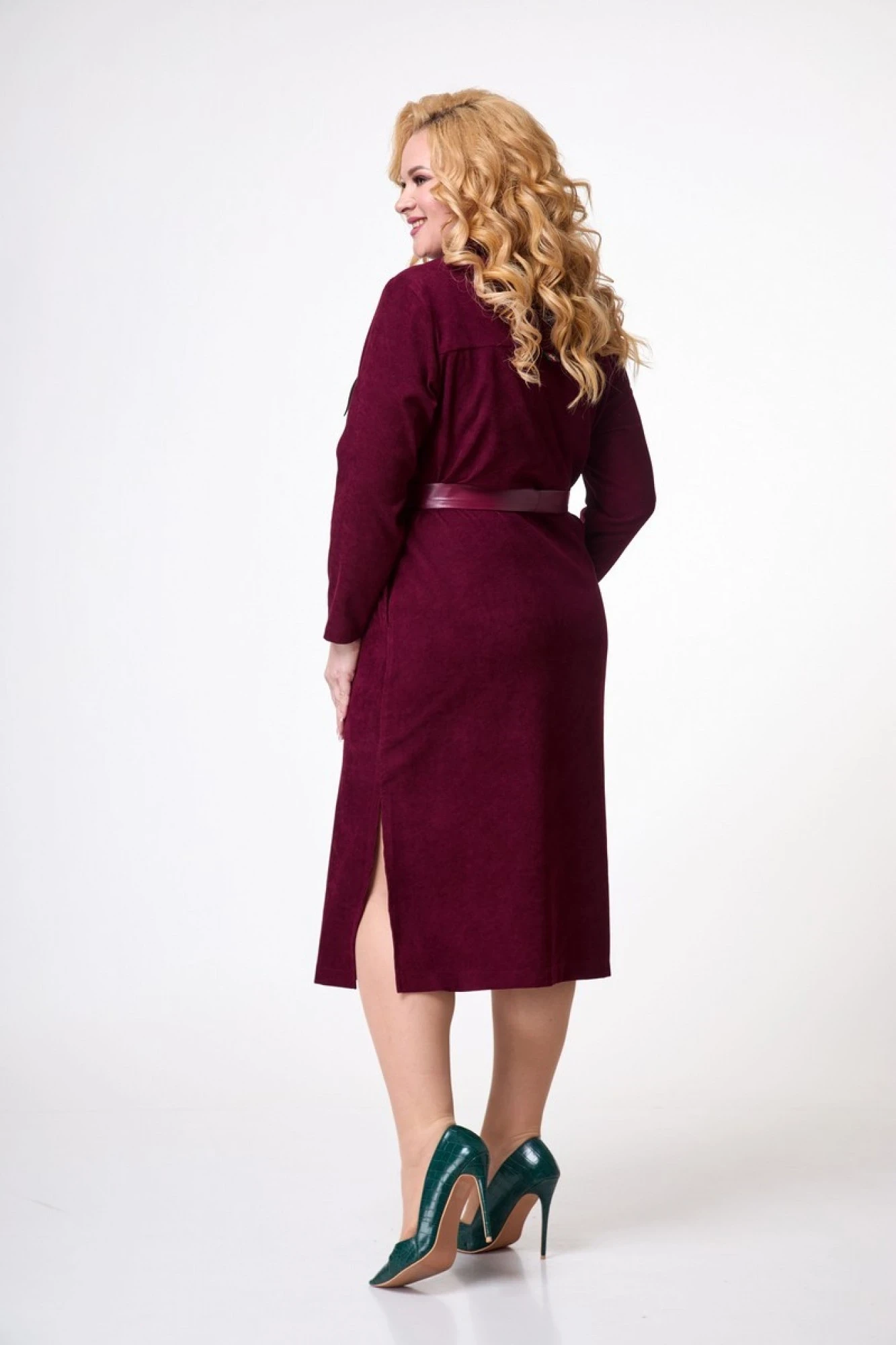 Платье-рубашка, прямого кроя, чуть расширенный к низу силуэт, длина миди. Длинный рукав. Классический рубашечный воротник на стойке. Застежка на петли пуговицы по переду. По переду нагрудный карман и карманы в боковых швах. Платье декорированно тесьмой по переду на нагрудном кармане и по спинке по кокетке. Подчеркнуть талию можно при помощи съемного пояса. Сочетание кожи и вельвета придаст образу новизны, свежести и стиля. Платье будет радовать вас не один сезон и вы в нем будете выглядеть законодательницей мод.