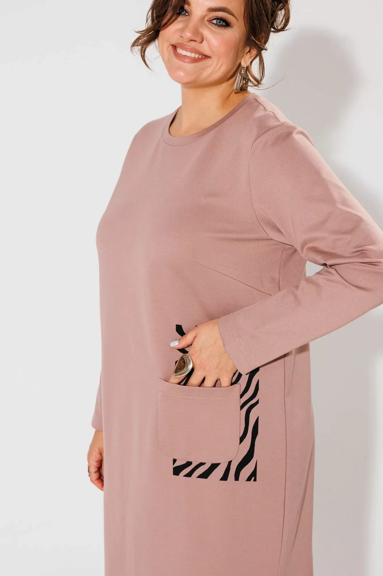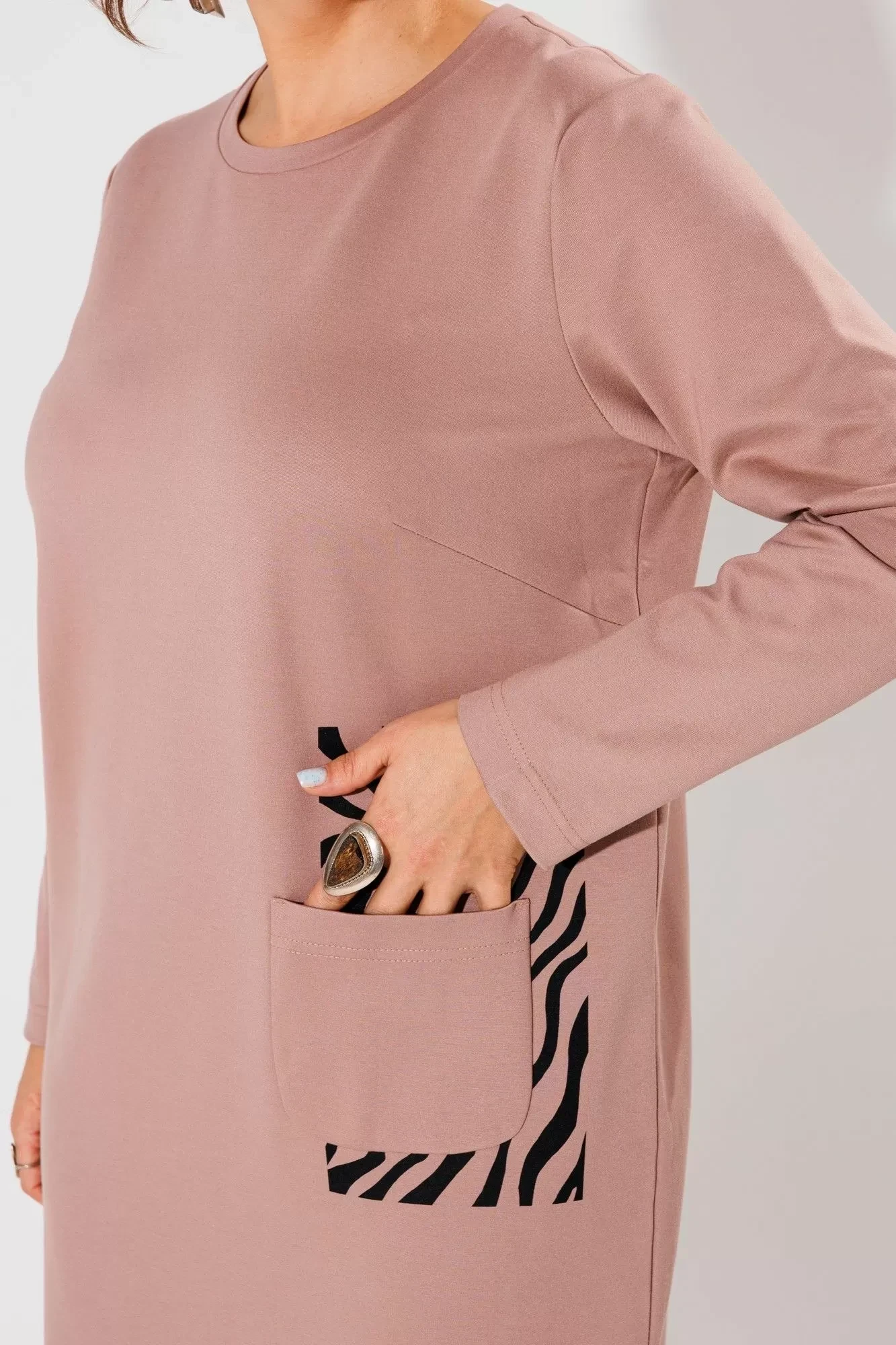 Но настоящая изюминка этого платья - это печать с принтом зебры под карманом.
