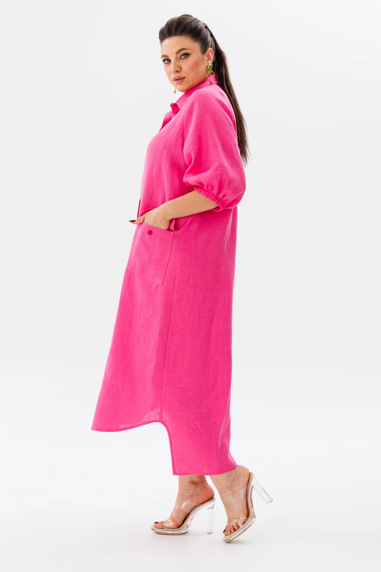 Платье-рубашка изготовлено из натурального льна. Лён – это не просто материал, это символ заботы о себе и окружающей среде. Выбирая одежду из натурального льна, вы делаете шаг к более осознанному и экологичному образу жизни, наслаждаясь при этом комфортом и стилем.