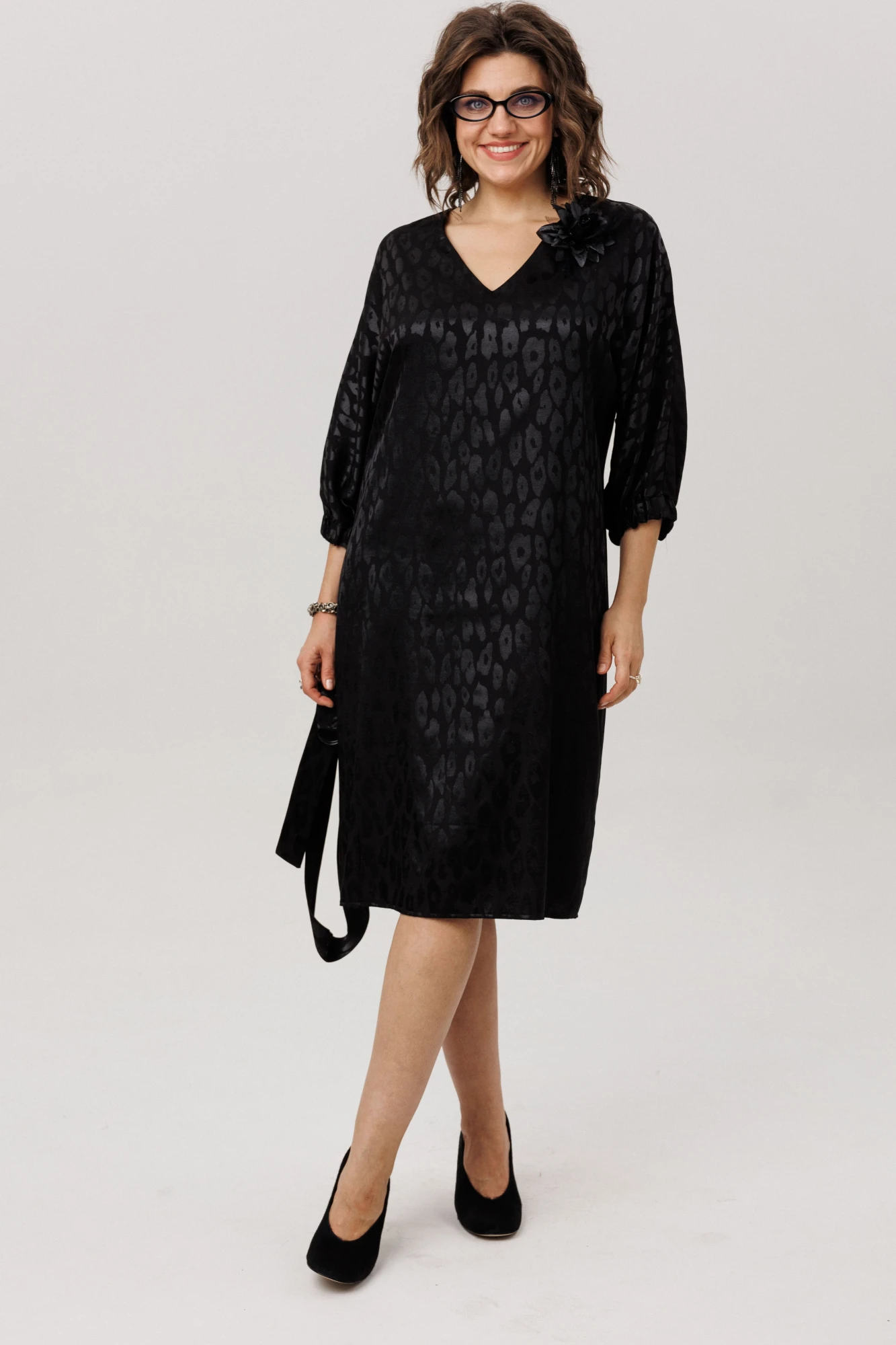 Это элегантное платье с прямым силуэтом станет идеальным дополнением вашего гардероба. Оно выполнено из легкой ткани с изысканным принтом в цвете «шелковый хищник», который добавляет наряду оригинальности и шарма.