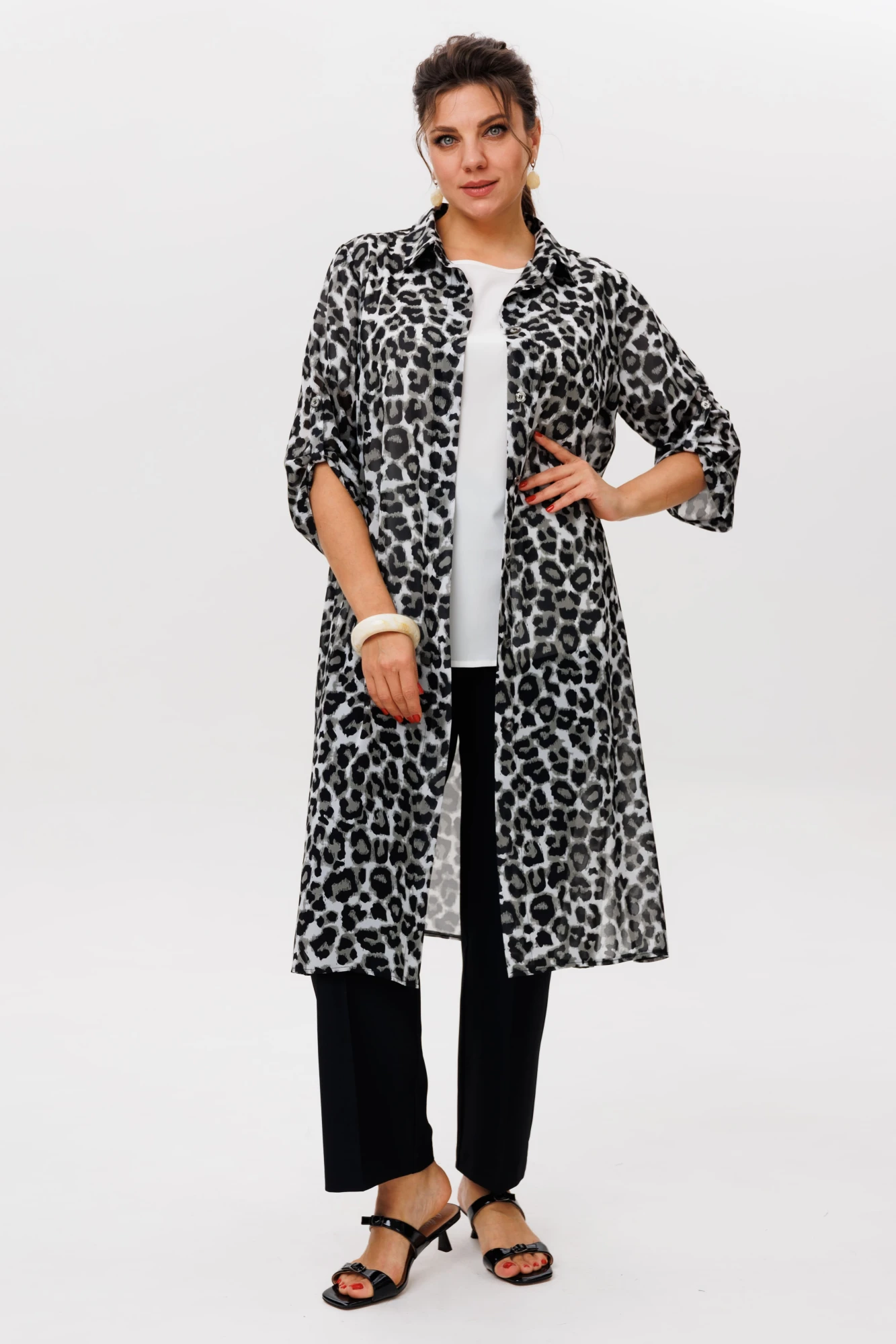Лёгкий шифон защитит от летнего ветерка, не утяжеляя силуэт, а стильный принт «теневой зверь» сделает вас заметной в любой ситуации. Это та самая вещь, в которой удобно, красиво и невероятно стильно. Шазюбль – для тех, кто любит моду без границ.