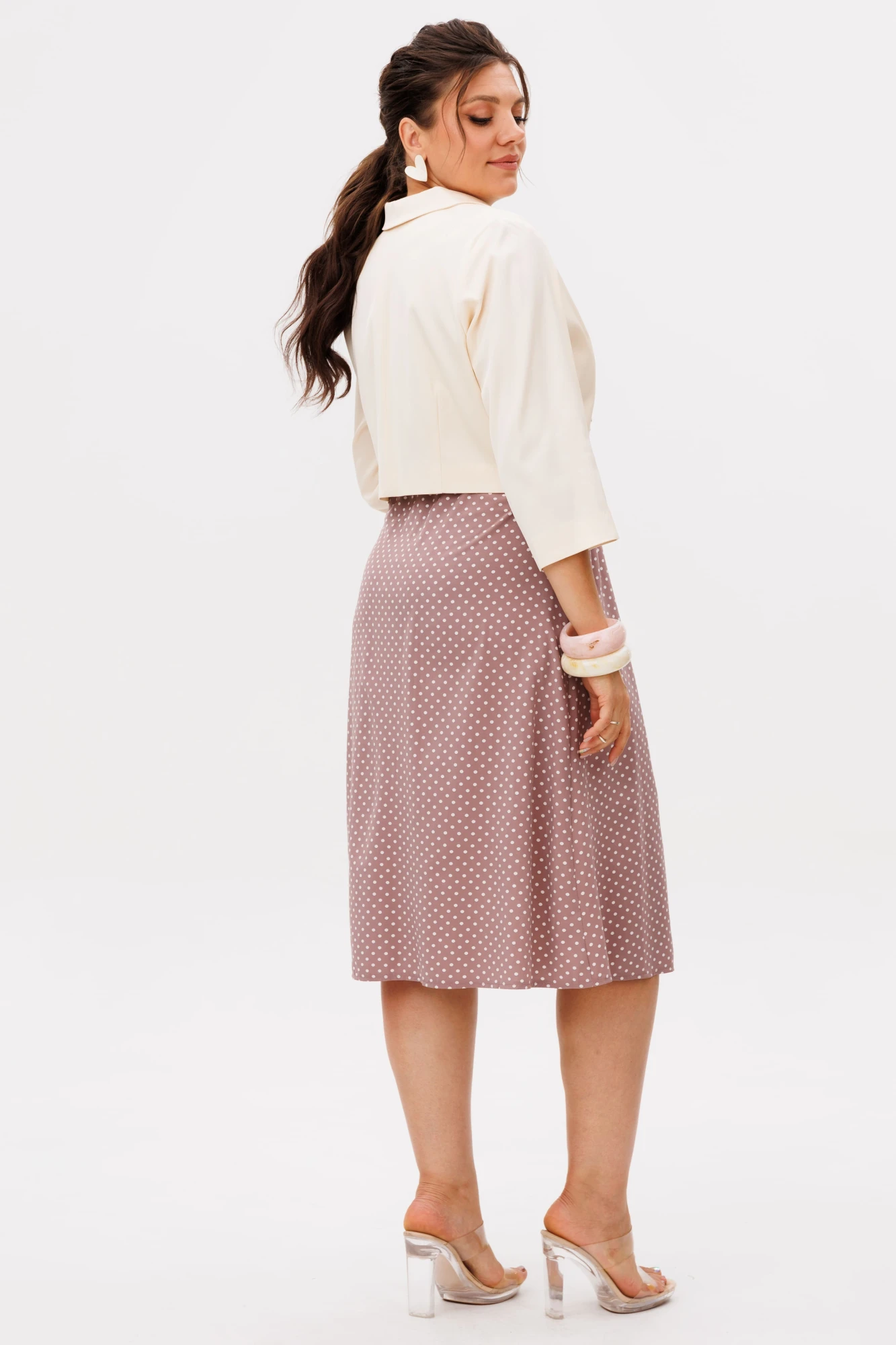 Платье легко становится самостоятельным акцентом образа, но особенно гармонично раскрывается в комплекте с кроп-жакетом 1708.2, создавая стильный и завершённый костюм 1708. Модель можно приобрести отдельно или собрать полноценный комплект, выбирая настроение и стиль под каждый день.
